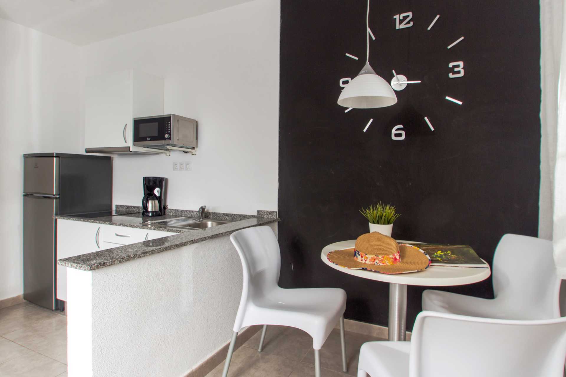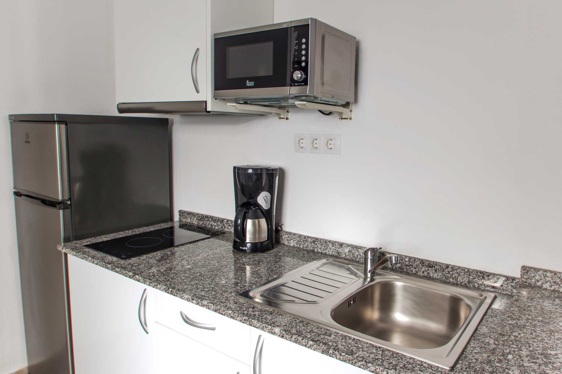 Toromsleilighet med balkong eller markterrasse. Et soverom og en stue med minikjøkken. To enkeltsenger. Minikjøkken med kokeplater, kjøleskap, brødrister og enkelt kjøkkenutstyr. Wifi inkludert. Safe mot avgift og depositum. TV. Strykejern. Hårføner. Dusj og wc. Rengjøring 5 ggr/uke.