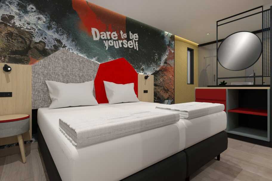Dobbeltrom med delt uteplass. Uteplassen har to stoler og et lite bord, og ligger ved en utendørs gangvei/passasje. To enkeltsenger. Mulig med en ekstraseng i sovesofa. Wifi er inkludert. Minibar. Dusj og wc. Rengjøring 3 ggr/uke. Barn under 2 år regnes inn i maksantallet i rommet.
