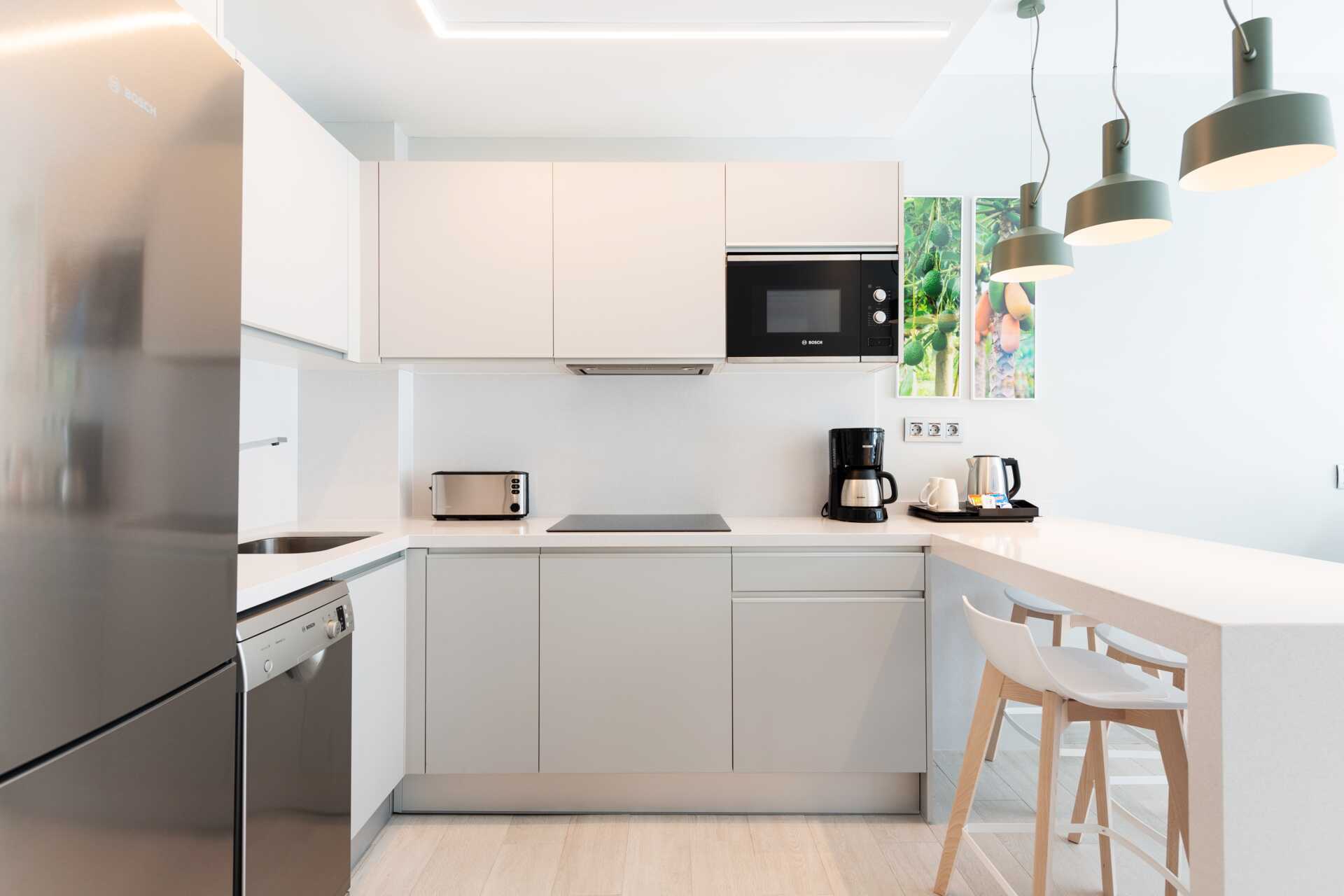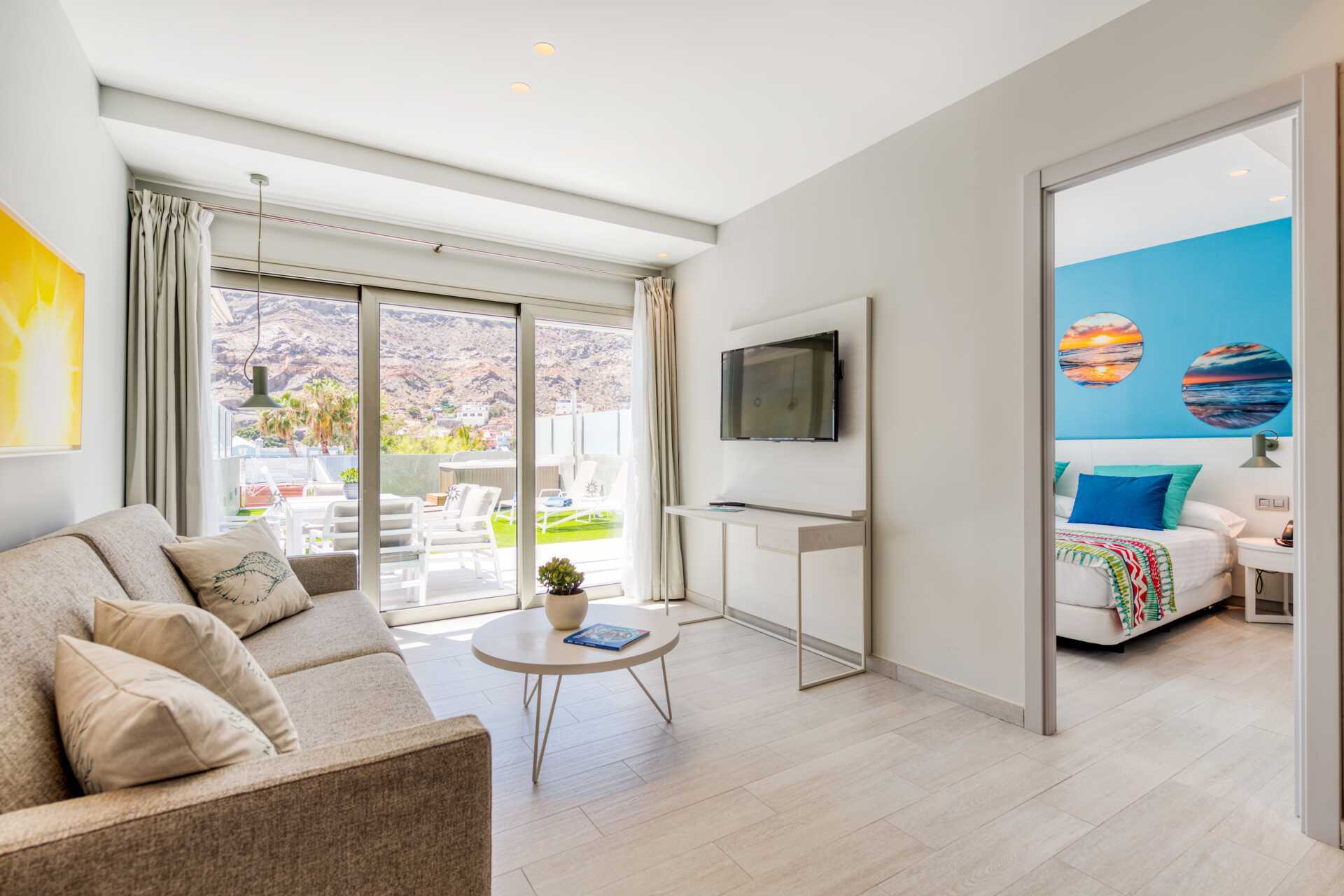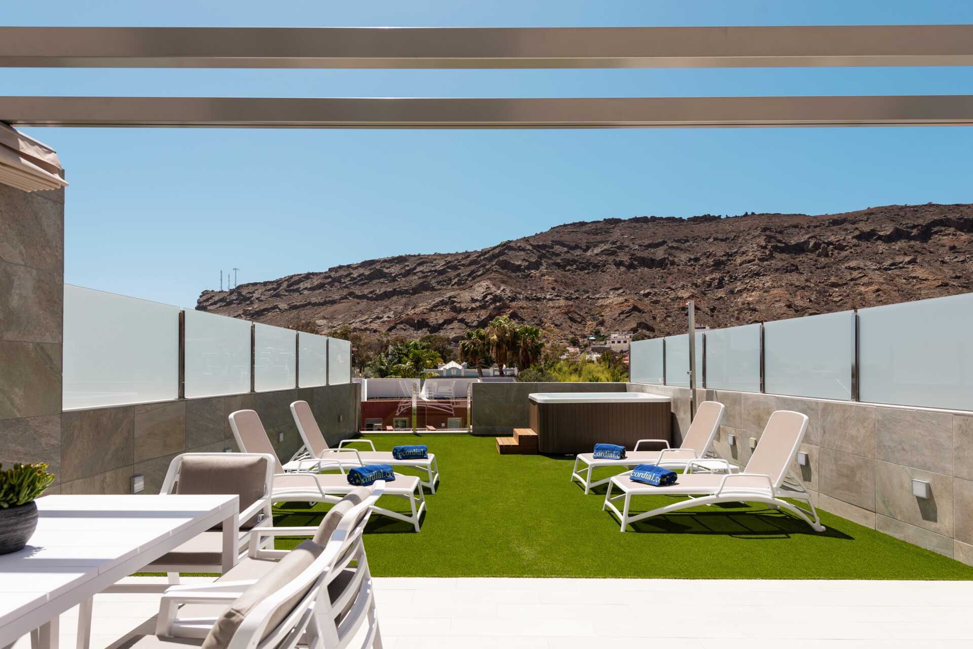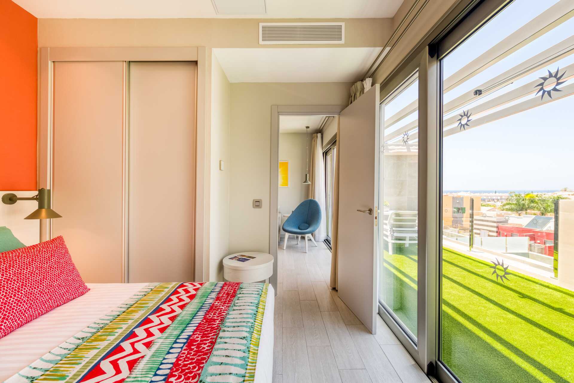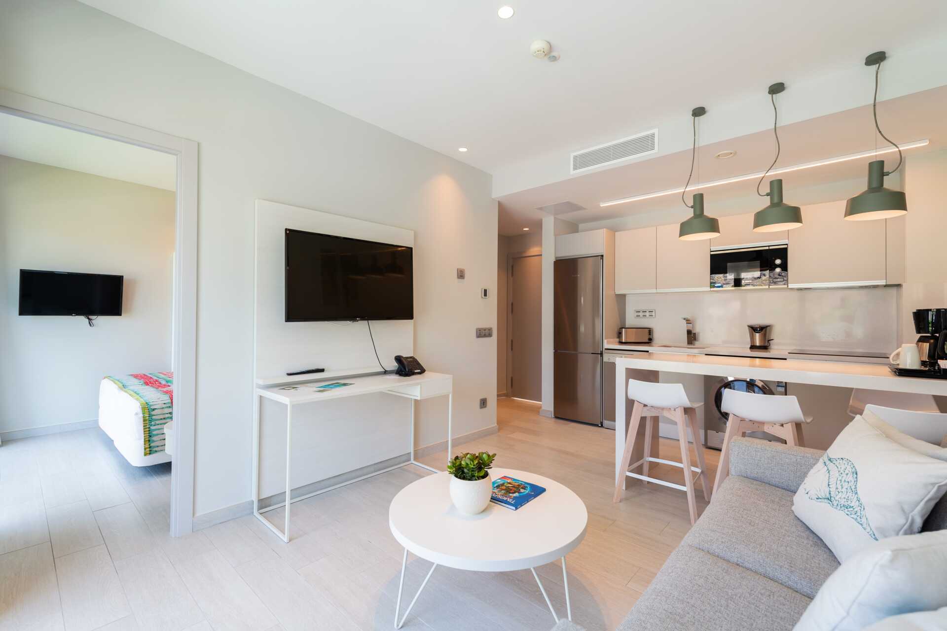 Superior toromsleilighet med stor balkong på cirka 14 kvadratmeter og stor takterrasse på 35 kvadratmeter med jacuzzi, solseng og dusj. Et soverom og stue med minikjøkken. To enkeltsenger. Mulig med ekstraseng i sovesofa. Minikjøkken med kjøleskap, oppvaskmaskin, mikrobølgeovn, kaffetrakter, vannkoker, brødrister og enkelt kjøkkenutstyr. Wifi, luftkondisjonering og safe inkludert. TV. Strykejern og strykebrett. Vaskemaskin og tørketrommel. Hårføner. Dusj og wc. Rengjøring 7 ggr/uke.
