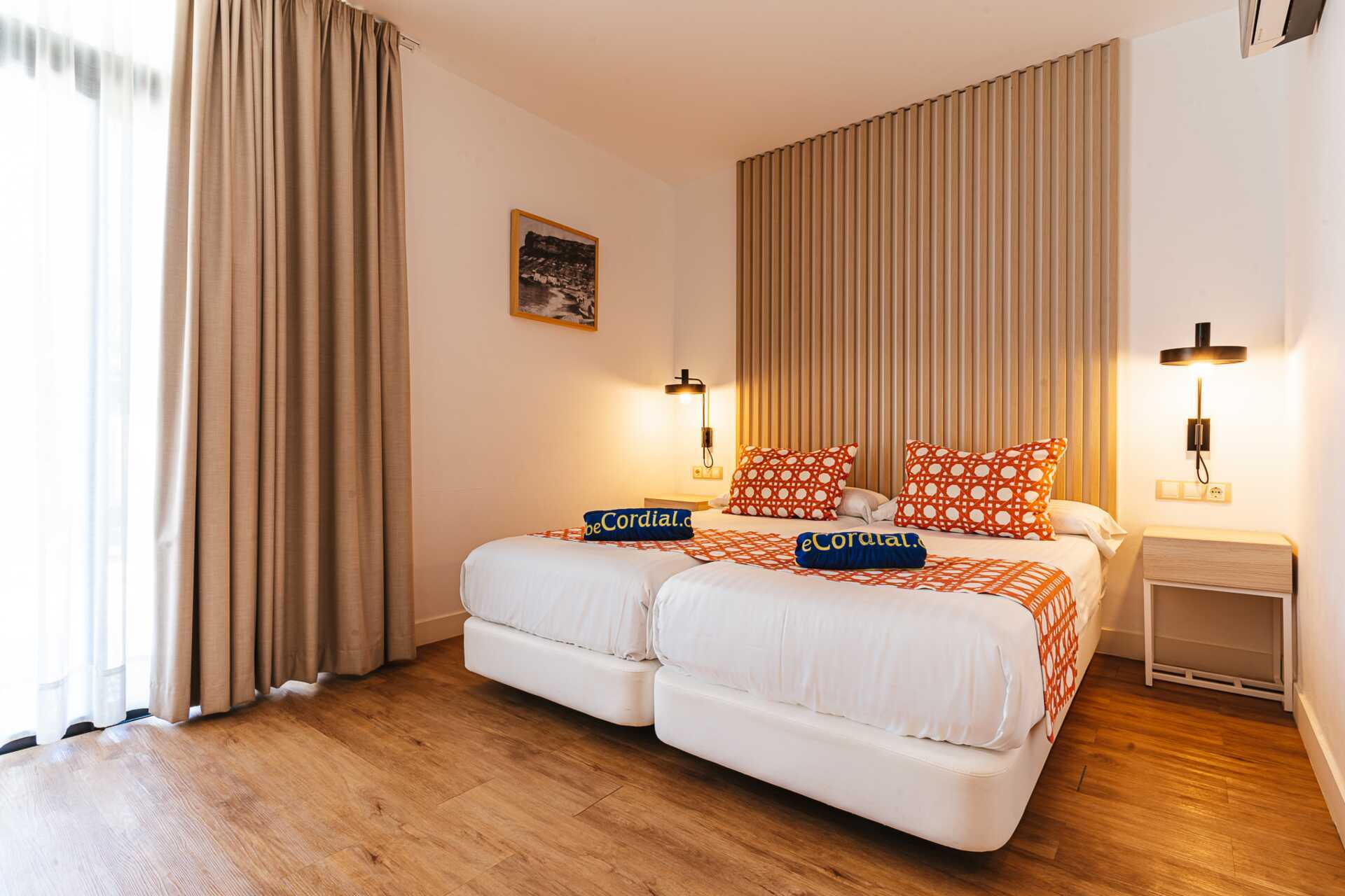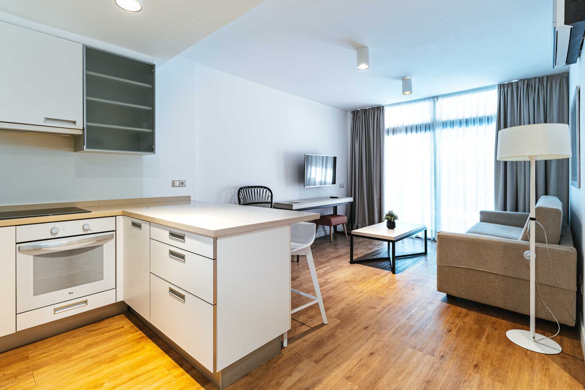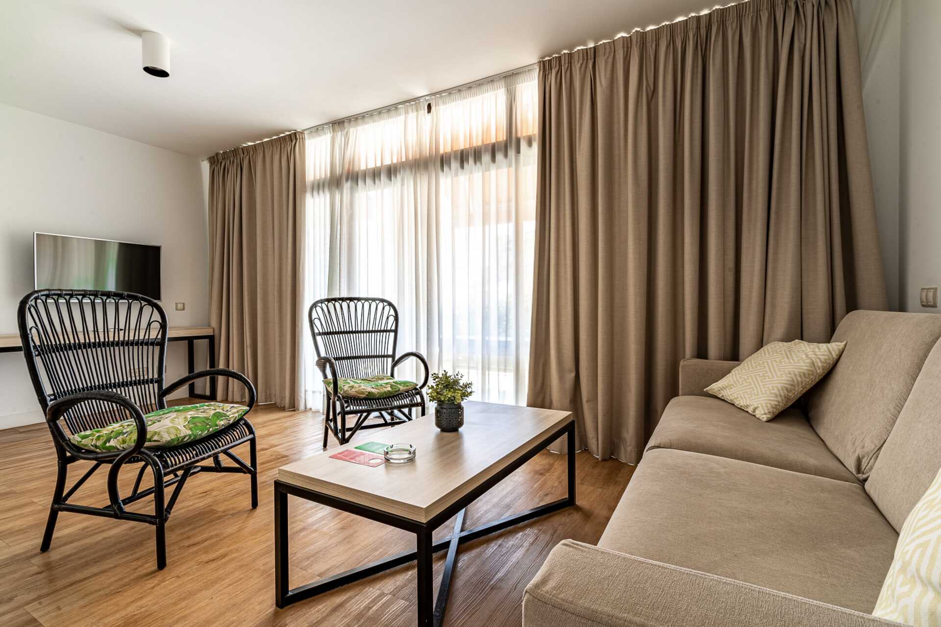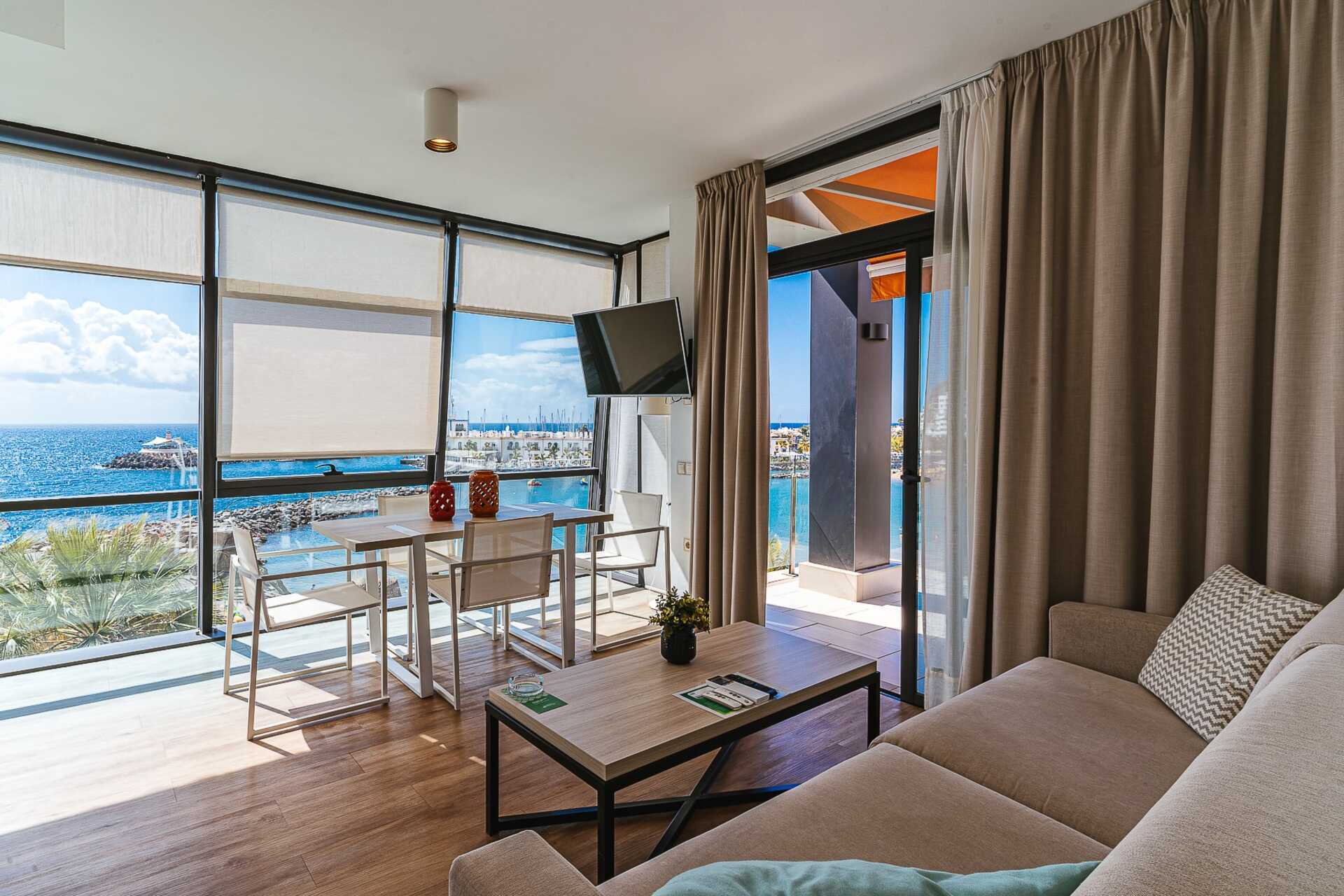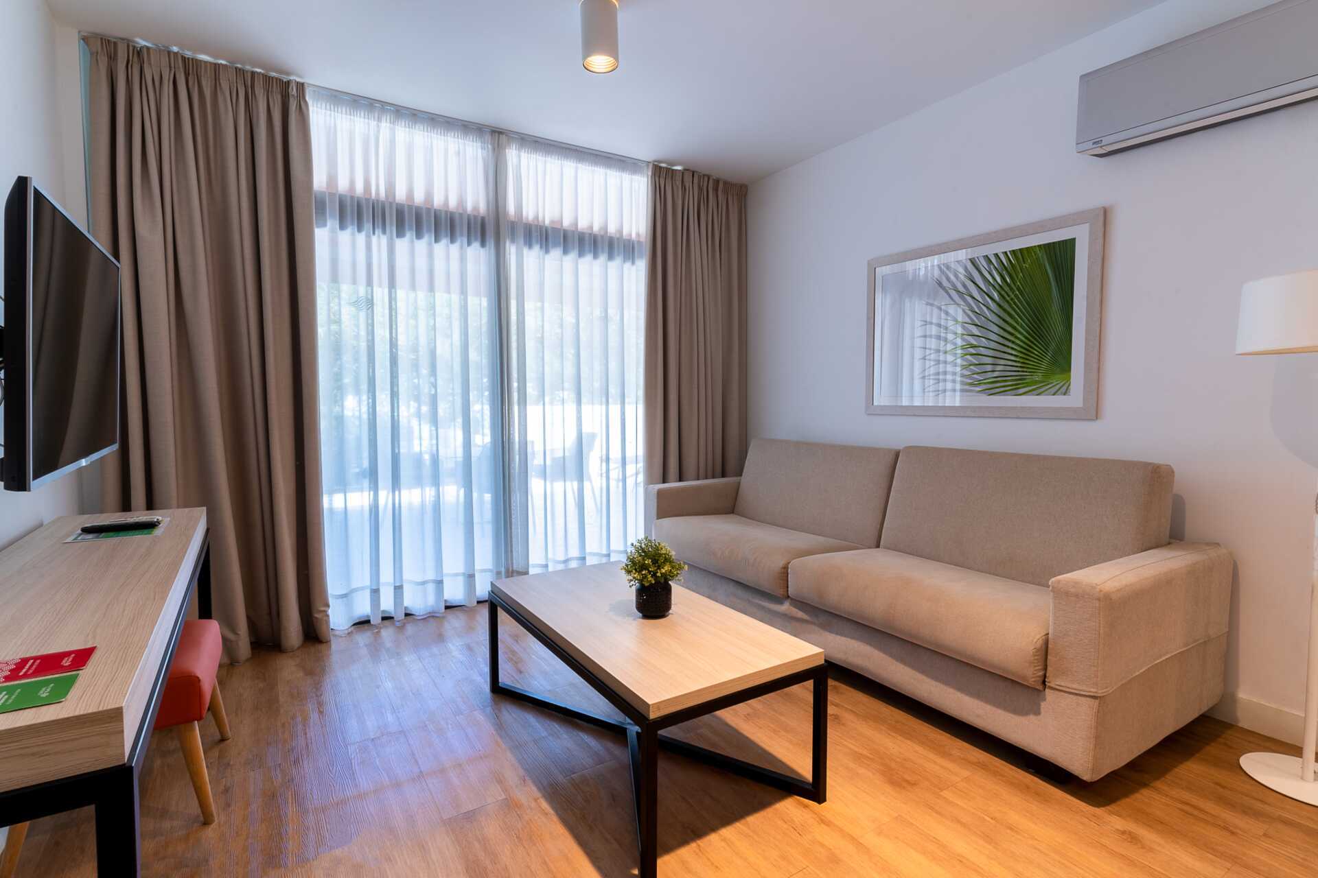 Toromsleilighet med balkong. Noen balkonger har havutsikt eller begrenset havutsikt. Leilighetene har varierende planløsning. Et soverom og en stue med minikjøkken. To enkeltsenger eller en dobbeltseng. Mulig med ekstrasenger i sovesofa. Minikjøkken med kjøleskap, fryser, komfyr, stekeovn, brødrister, kaffetrakter, vannkoker, mikrobølgeovn, oppvaskmaskin og enkelt kjøkkenutstyr. Wifi, safe og luftkondisjonering inkludert. TV i hvert rom. Noen leiligheter har kjøkkenbord og stoler, andre har bardisk med høye stoler. Vaskemaskin, tørketrommel, strykejern og strykebrett. Hårføner. Dusj og wc. Rengjøring 5 ggr/uke.