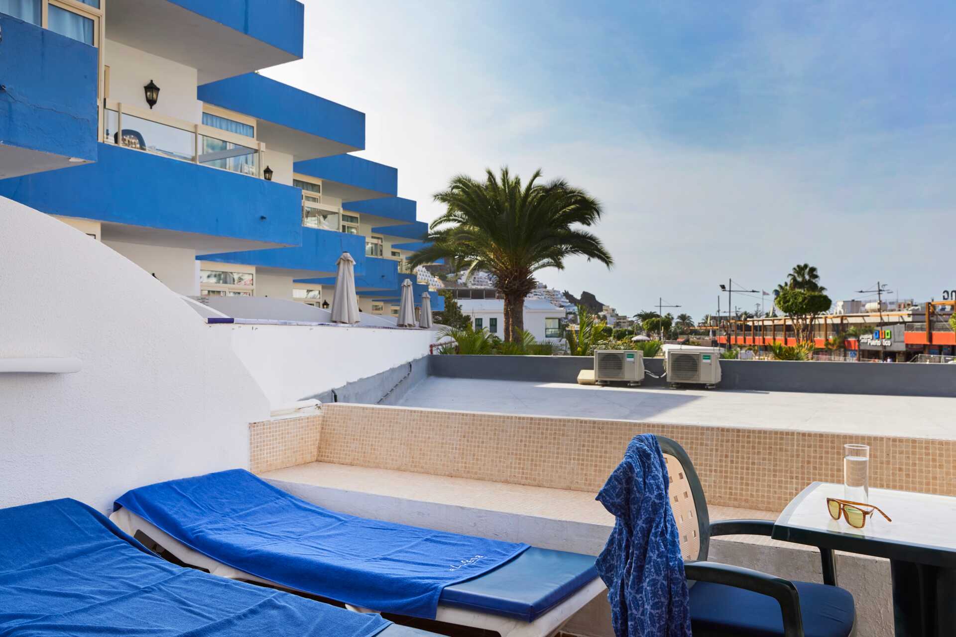 Toromsleilighet superior med stor balkong. På balkongen er det en parasoll og to solsenger samt et bord og stoler. Et soverom og en stue med minikjøkken. To enkeltsenger. Mulig med ekstraseng i sovesofa. Wifi inkludert. Luftkondisjonering og safe mot avgift. Takvifte. Minikjøkken med kokeplater, mikrobølgeovn, kjøleskap, brødrister, vannkoker, kaffetrakter og enkelt kjøkkenutstyr. TV med lokale kanaler. Hårføner. Badekåper. Dusj og wc. Rengjøring