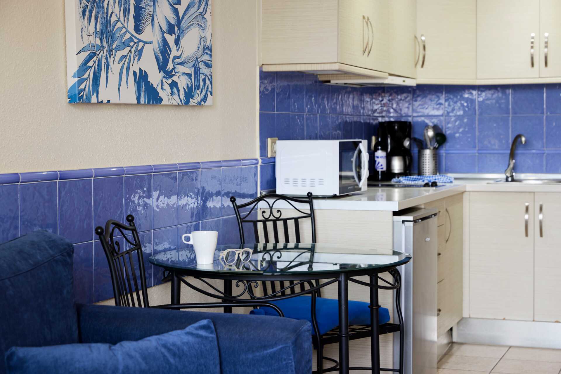 Toromsleilighet med balkong, noen med bassengutsikt, alternativt stor balkong, noen med bassengutsikt. Soverom og stue med minikjøkken. To enkeltsenger. Mulig med ekstraseng i sovesofa. Wifi inkludert. Luftkondisjonering og safe mot avgift. Takvifte. Minikjøkken med kokeplater, mikrobølgeovn, kjøleskap, brødrister, vannkoker, kaffetrakter og enkelt kjøkkenutstyr. TV med lokale kanaler. Hårføner. Badekåper. Dusj og wc. Rengjøring 5 ggr/uke.