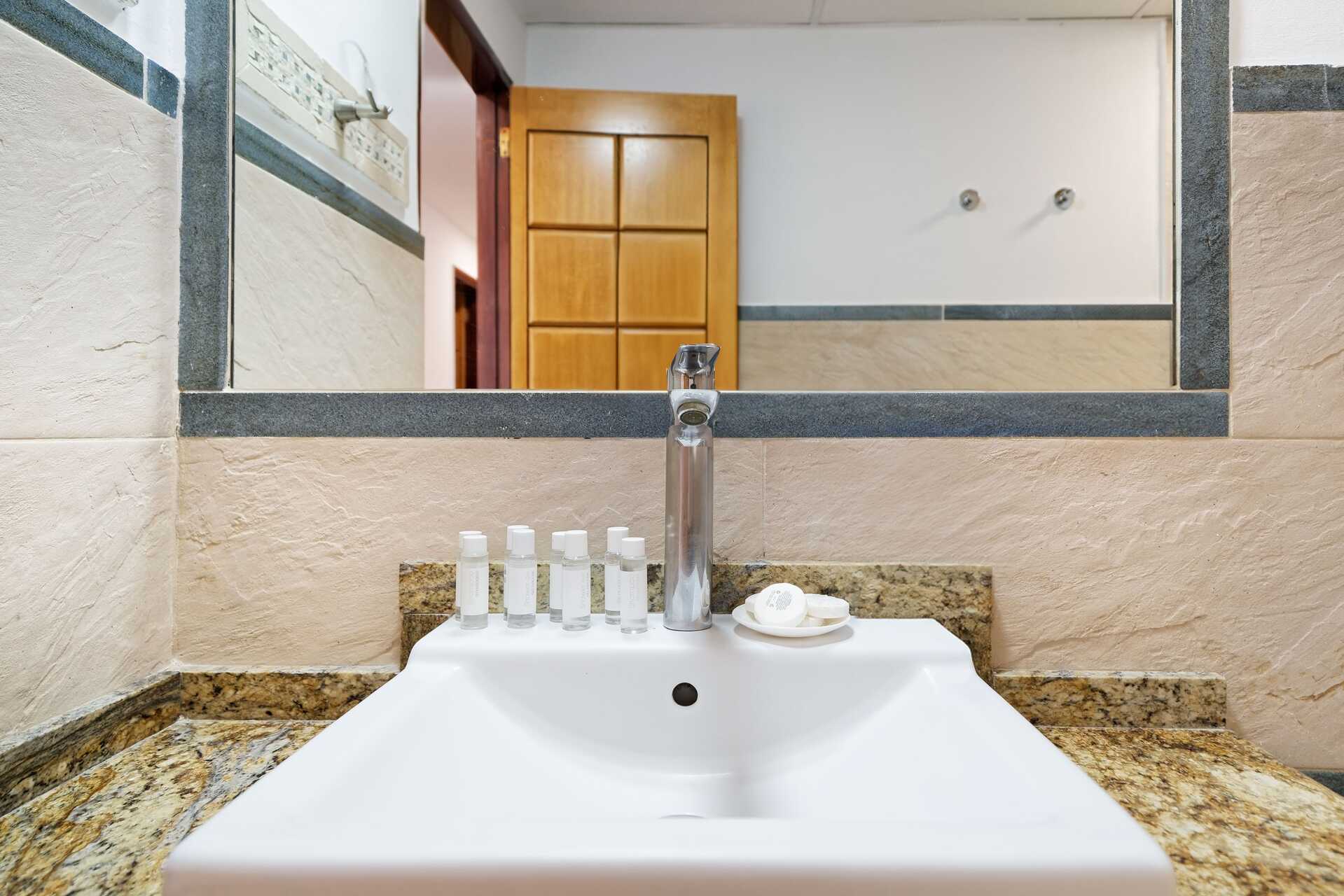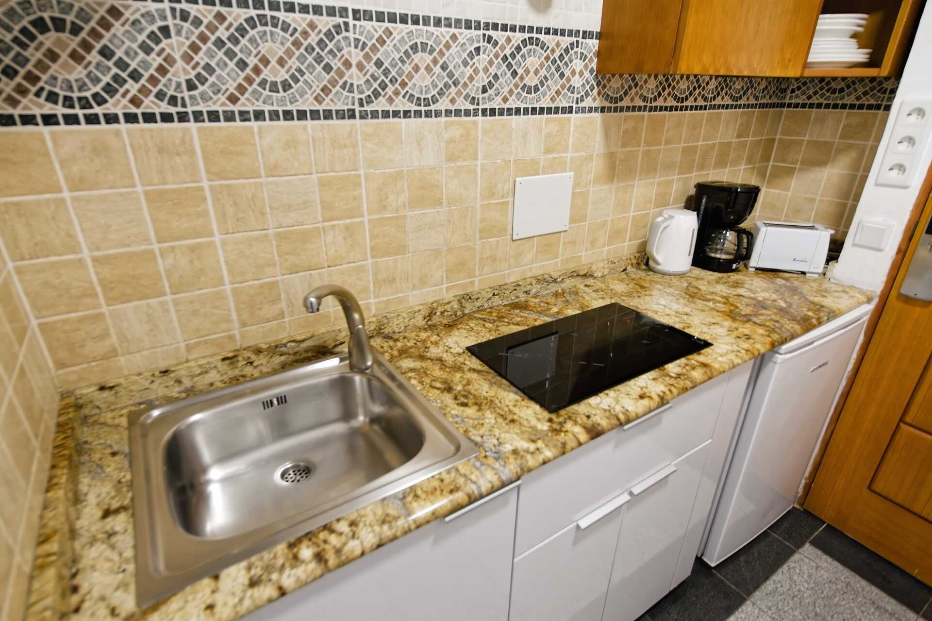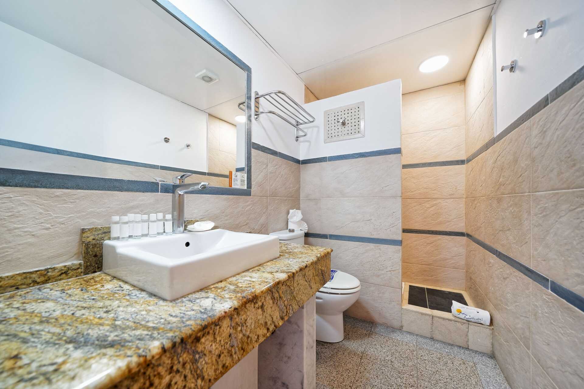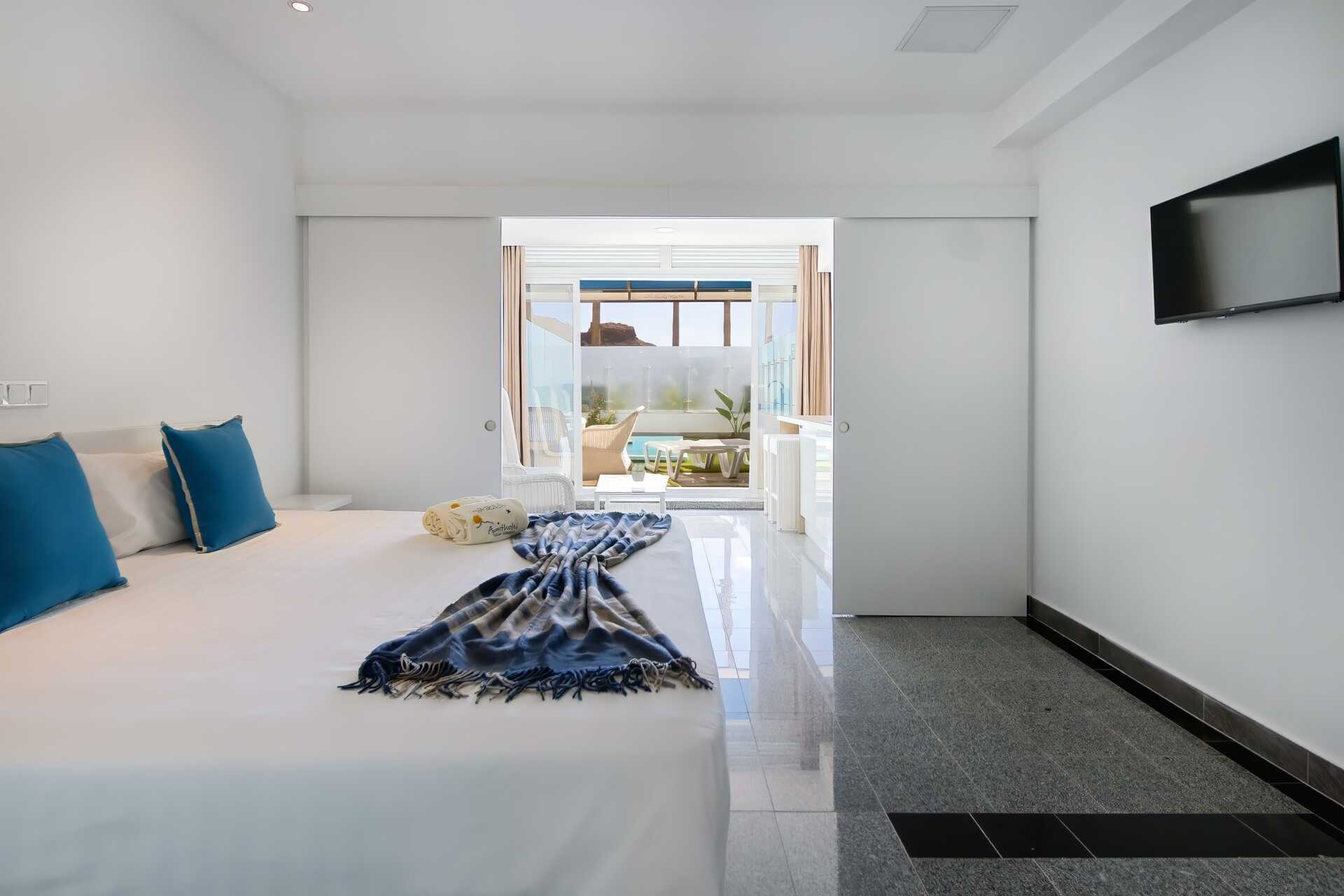 Toromsleilighet deluxe med eget basseng På markterrasse er det to solsenger, bord og lenestoler og en liten gressplen. Et soverom og en stue med minikjøkken. En dobbeltseng. Minikjøkken med kokeplater, kjøleskap, brødrister, kaffetrakter, vannkoker, mikrobølgeovn og enkelt kjøkkenutstyr. Spiseområdet kan være ved bardisken. Wifi, luftkondisjonering og safe inkludert. TV. Badekåper. Hårføner. Dusj og wc. Rengjøring 7 ggr/uke.