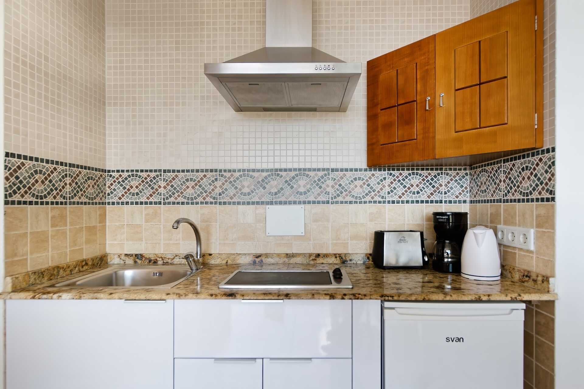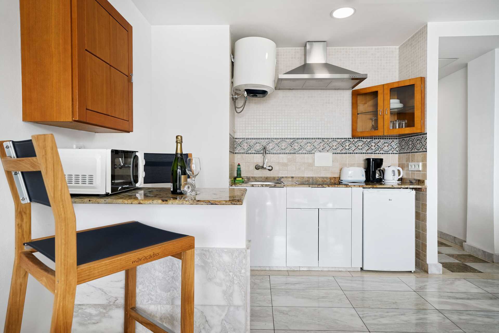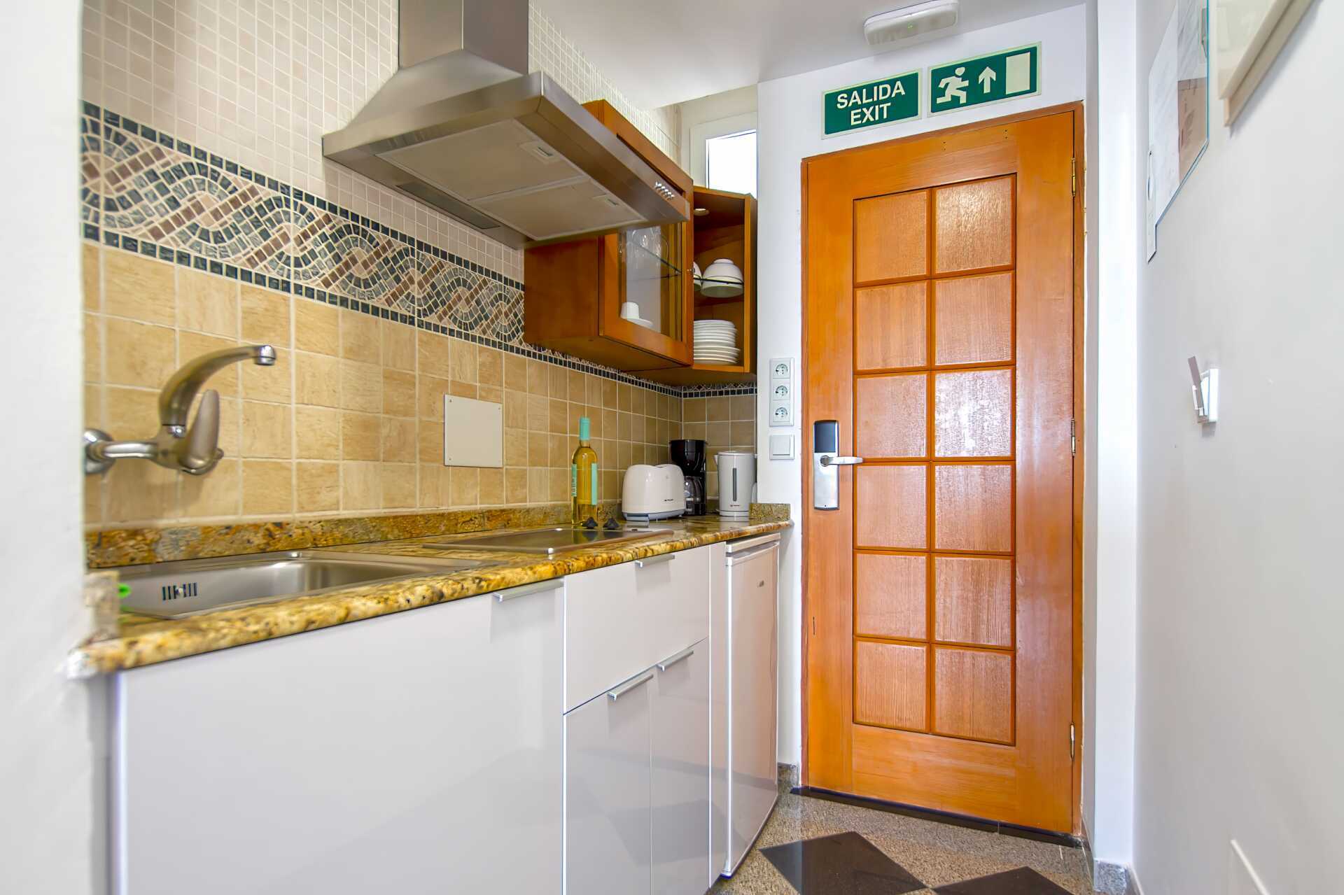 Ettromsleilighet superior med balkong og havutsikt. Leilighetene ligger i tredje eller fjerde etasje. Minikjøkken. En dobbeltseng. Minikjøkken med kokeplater, kjøleskap, brødrister, kaffetrakter, vannkoker, mikrobølgeovn og enkelt kjøkkenutstyr. Noen leiligheter har spiseplass bed bardisk. Wifi og luftkondisjonering inkludert. Safe mot avgift. TV. Hårføner. Dusj og wc. Rengjøring 6 ggr/uke.