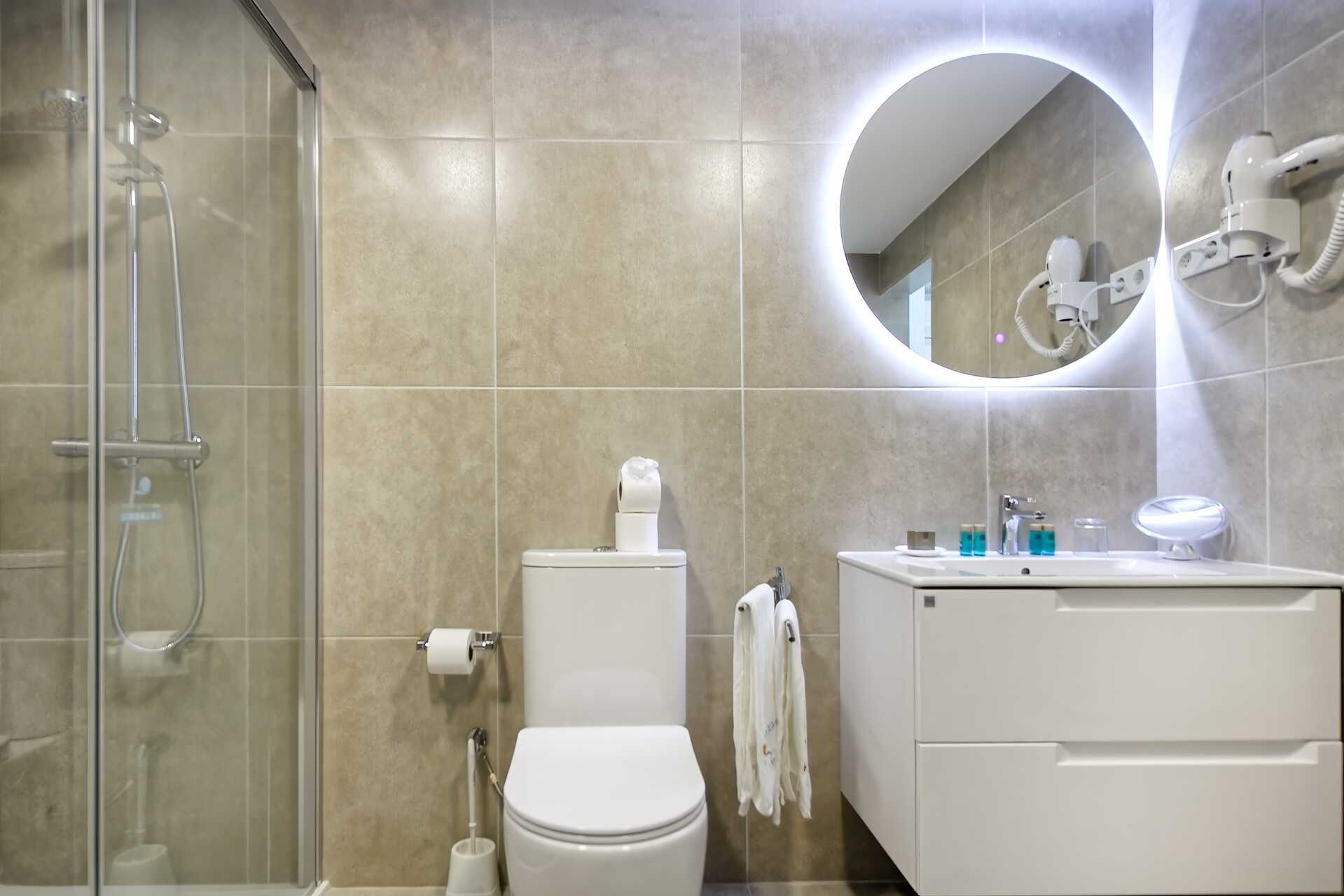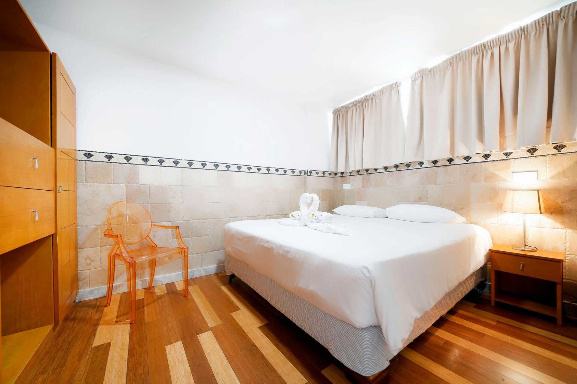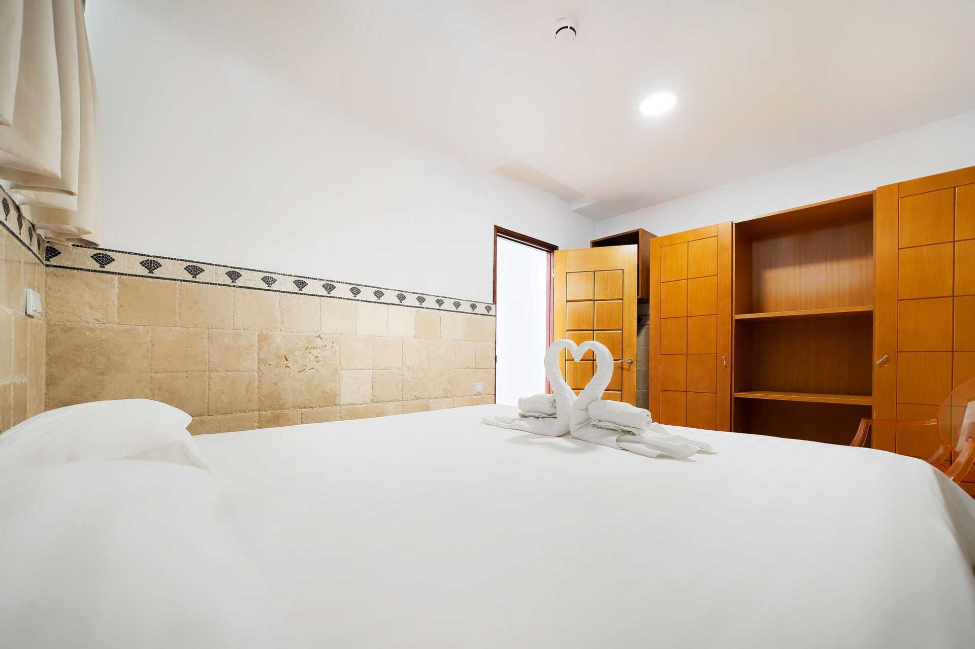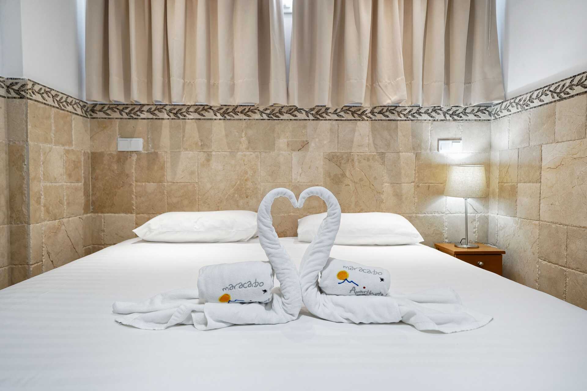 Toromsleilighet deluxe med balkong og havutsikt. Leilighetene ligger i femte etasje. Et soverom og en stue med minikjøkken. En dobbeltseng eller to enkeltsenger. Mulighet med ekstraseng i sovesofa. Minikjøkken med kokeplater, kjøleskap, brødrister, kaffetrakter, vannkoker, mikrobølgeovn og enkelt kjøkkenutstyr. Noen leiligheter har spiseplass ved bardisk. Wifi, luftkondisjonering og safe inkludert. TV. Hårføner. Dusj og wc. Rengjøring 7 ggr/uke.