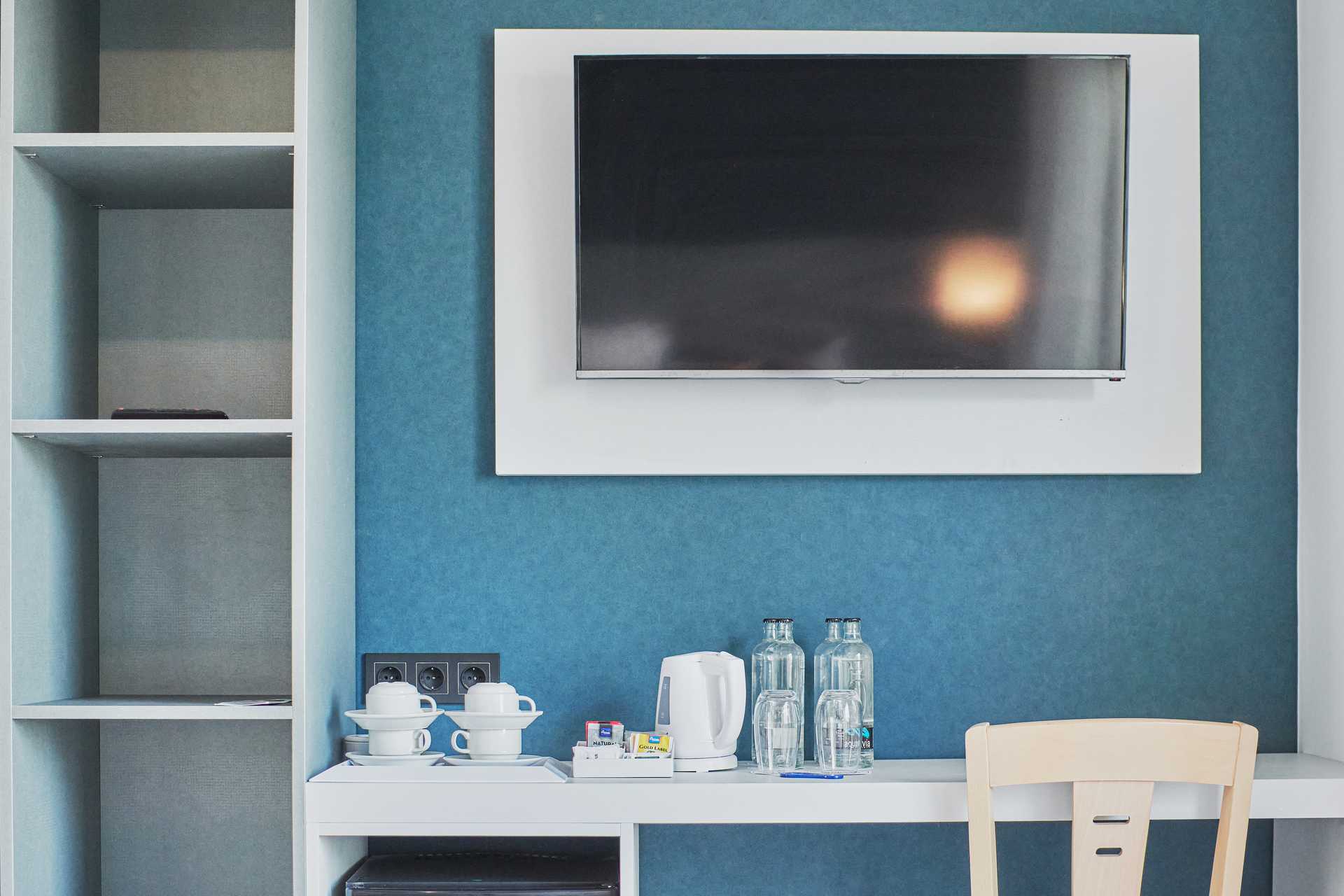 Standardrom med balkong og havutsikt. En seng. Wifi og luftkondisjonering inkludert. Safe mot avgift. Kjøleskap. TV. Hårføner. Baderom med dusj og wc. Rengjøring 7 ggr/uke.