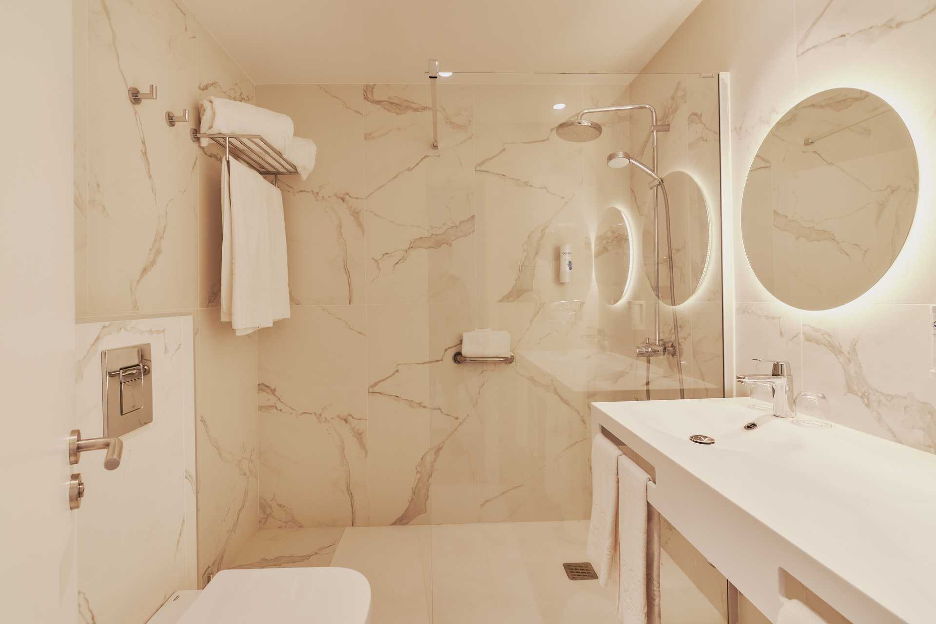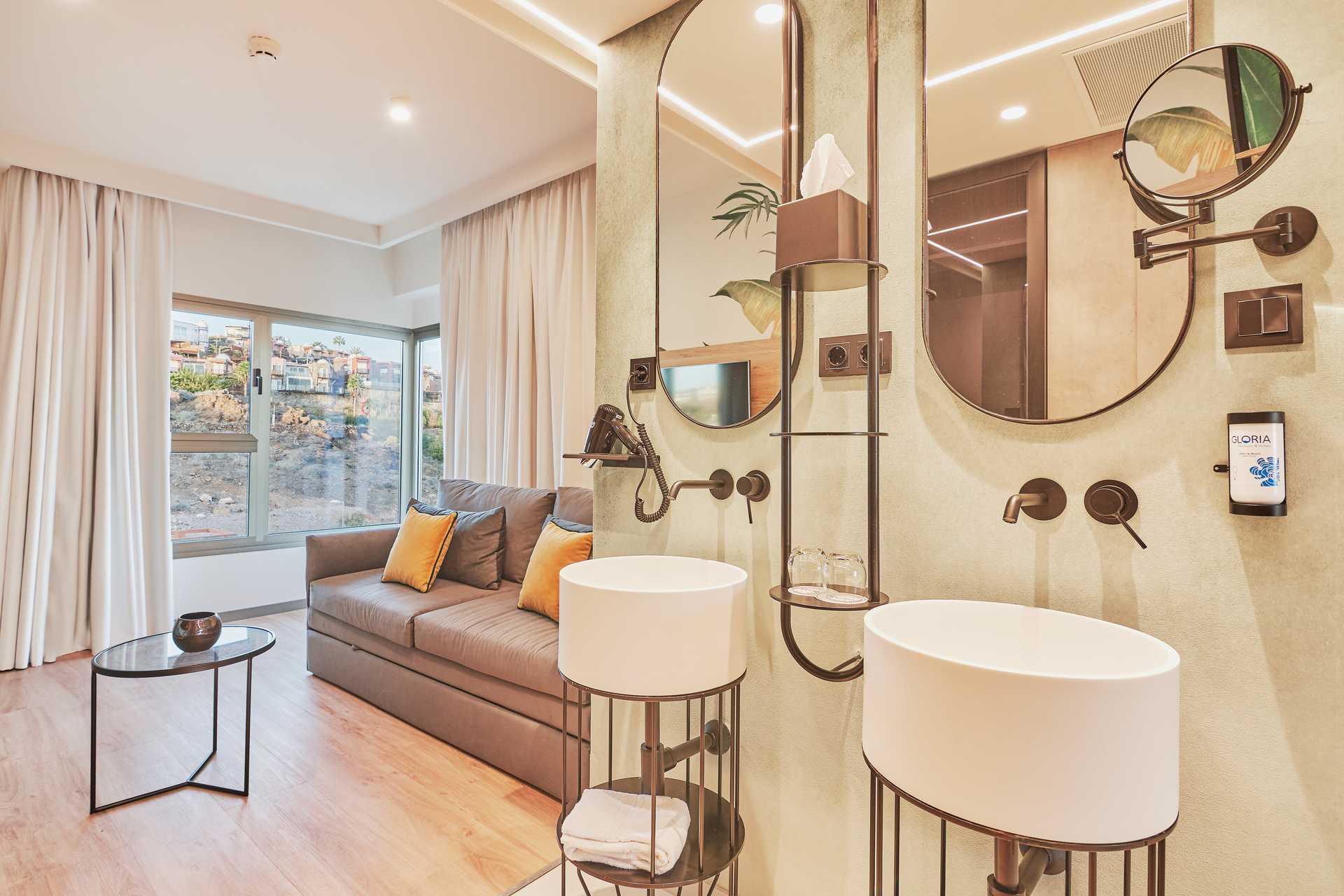 Juniorsuite med balkong og havutsikt. Juniorsuitene består av soverom og stue med åpen planløsning. En dobbeltseng. Mulig med en ekstraseng i sovesofa. Wifi og luftkondisjonering inkludert. Safe mot avgift. Kjøleskap. TV. Hårføner. Badekaret står i soverommet. Fra soverommet er det åpen planløsning til vasken. Separat dusj med glassvegger. Separat toalett. Rengjøring 7 ggr/uke.