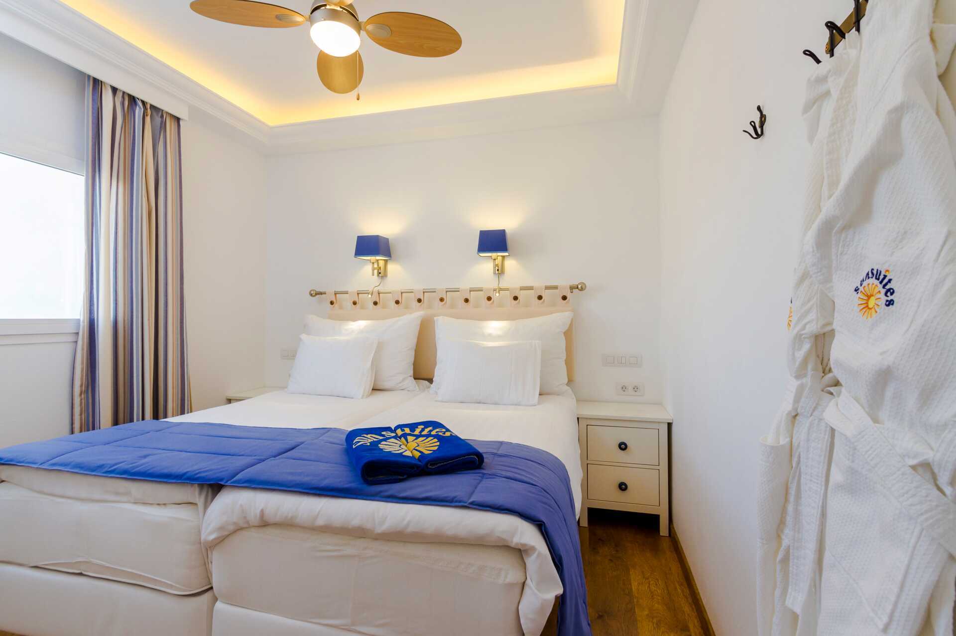 Toromsleilighet med balkong eller terrasse - alle med unik design og interiør. Glassvegg som kan vikes mellom uteplassen og stuen. Et soverom med to enkeltsenger og en kombinert stue med minikjøkken. Velutstyrt kjøkkenkrok med kokeplater, stekeovn, kjøleskap med fryser, oppvaskmaskin, kaffetrakter, Nespresso kaffemaskin og vannkoker samt bra kjøkkenutstyr. Wifi og luftkondisjonering inkludert. Takvifte. TV. Bluetooth høyttaler. Vaskemaskin. Bassenghåndklær, badekåper og tøfler. Hårføner. Dusj og wc. Rengjøring 2 ggr/uke. I noen leiligheter er det noen få trappetrinn.