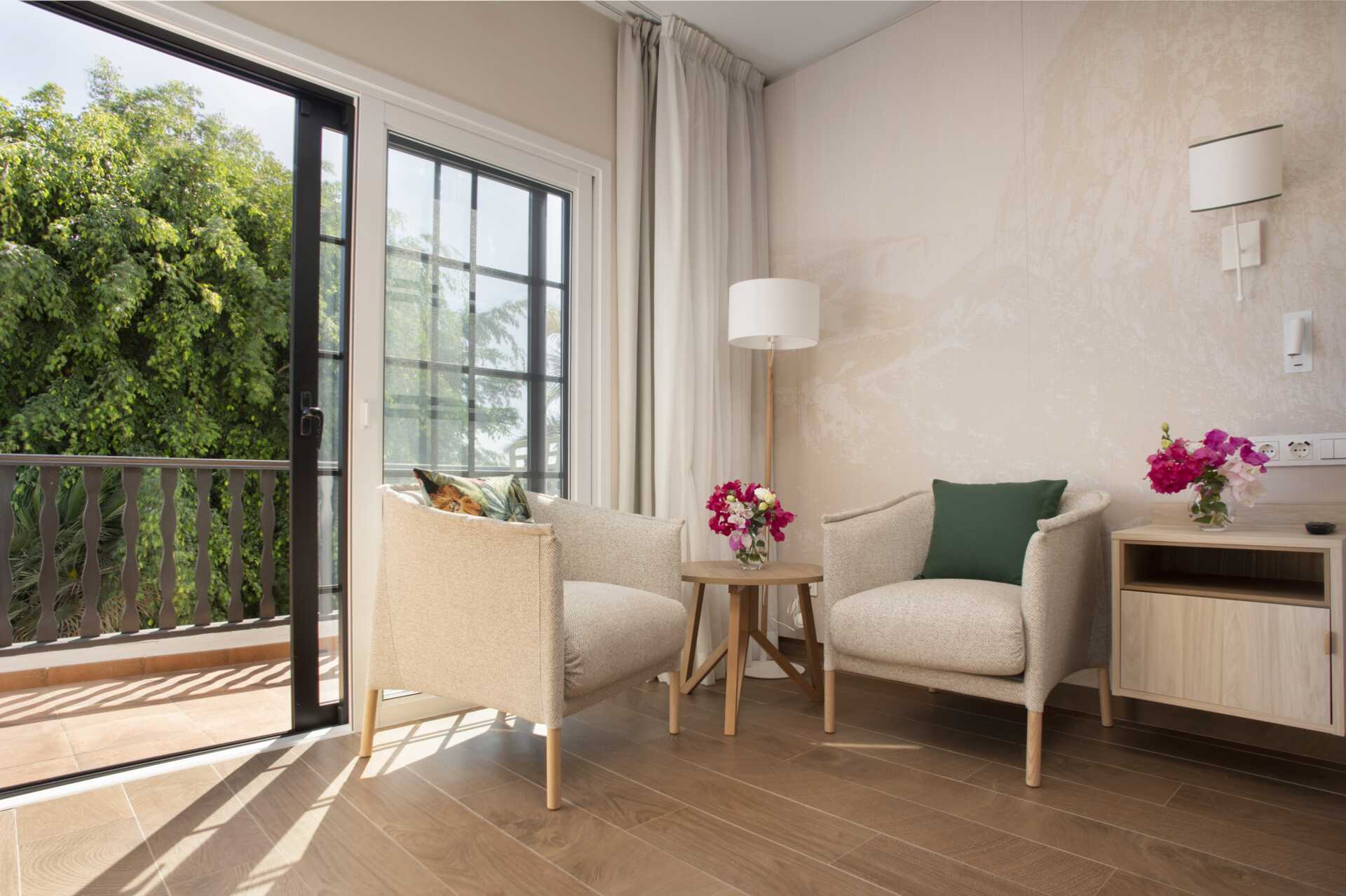 Juniorsuite med balkong eller terrasse. Juniorsuitene ligger i toetasjes bygninger uten heis. Soverom med en dobbeltseng eller to enkeltsenger, samt en stue med mulighet for ekstraseng på sovesofaen. Wifi og luftkondisjonering inkludert. Safe mot avgift. Minibar. Illy kaffemaskin. Vannkoker. TV. Hårføner. Badekar og wc. Rengjøring 7 ggr/uke. Barn under 2 år regnes inn i maksantallet i rommet.