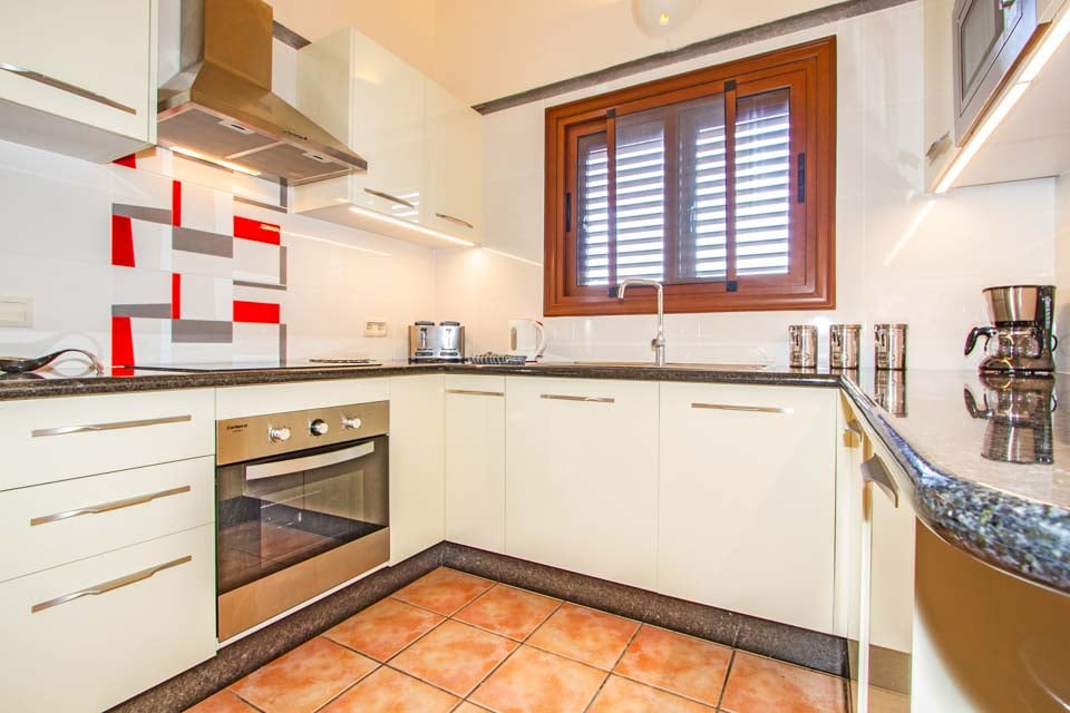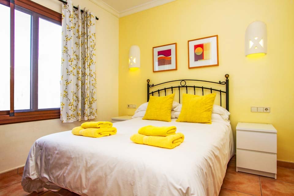 Gardone er en tradisjonell skattkiste, med hvitkalkede stukkaturvegger og lyse trevinduer som er overfylte med autentiske spanske trekk. Interiøret er kult og innbydende, med ferskenfliser på gulv og beige vegger som gir en følelse av elegant sjarm. Innredningen gjenspeiler en moderne glød i hele villaen, med matchende nøytrale hvite og beige farger. Den åpne stuen har en hjemmekoselig stue med myke sofaer og pynteputer samlet rundt den gammeldagse peisen. Spiseområdet innendørs er en pittoresk krok med en polstret hjørnebenk og et blankt trebord. Tilstøtende ligger det eksklusive kjøkkenet, med elegante hvite skap og de nyeste hvitevarene for den enkleste matlagingsopplevelsen.