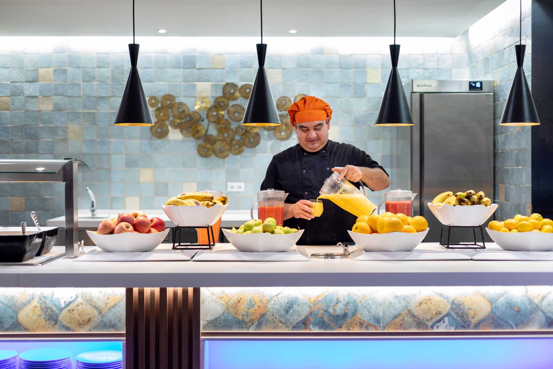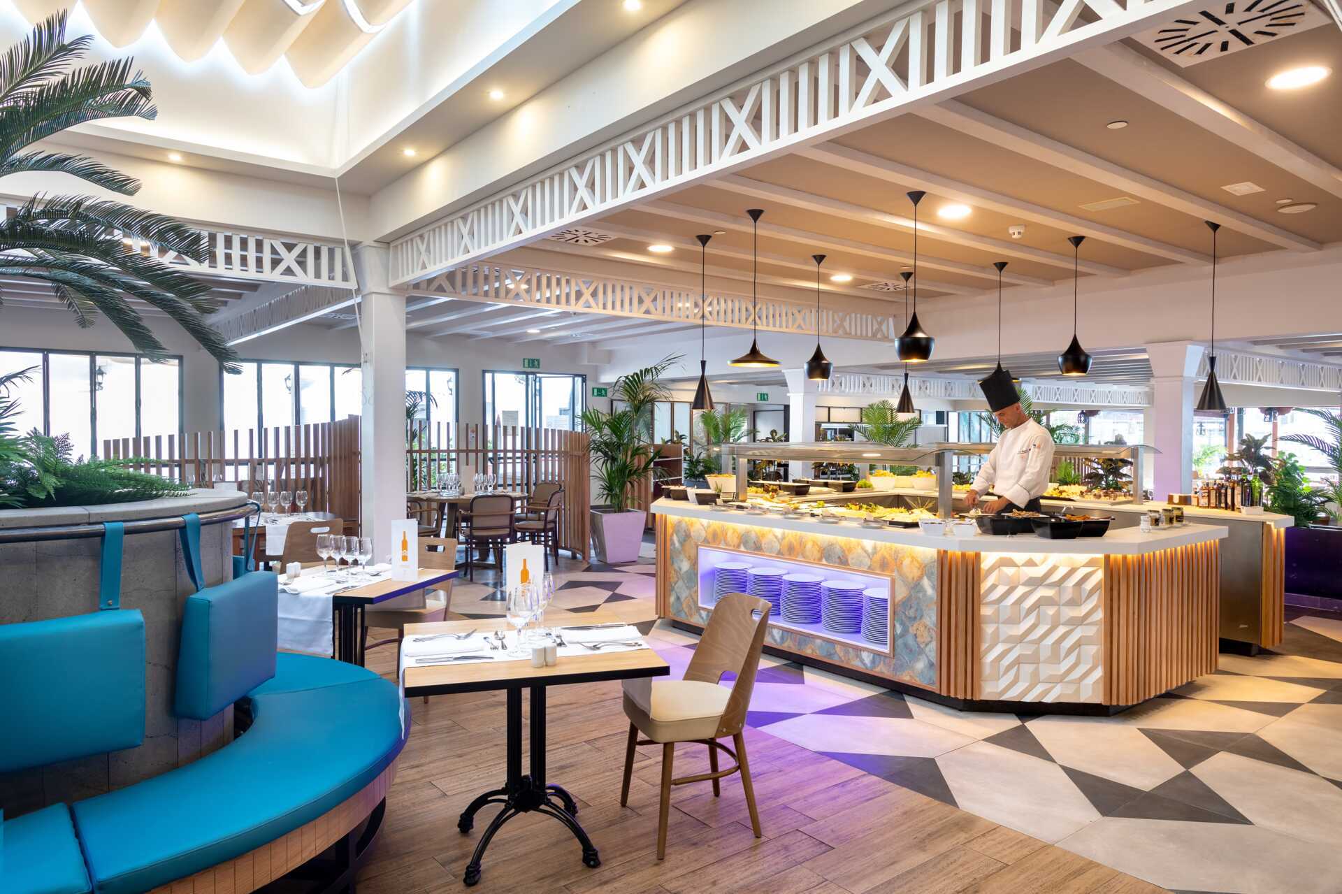 På hotellets bufférestaurant, Las Colordadas, serveres frokost, lunsj og middag. À la carte-restauranten La Ricotta serverer italiensk mat, mens à la carte-restauranten Oishii tilbyr asiatiske retter. Pent antrekk, menn må ha langbukser til middag. Det finnes også en poolbar som serverer lette måltider, en sportsbar og underholdning med levende musikk.