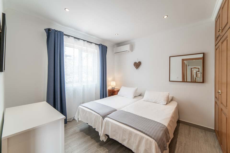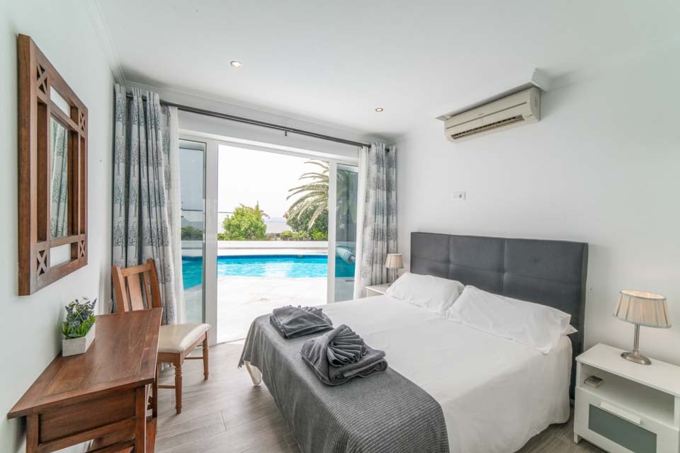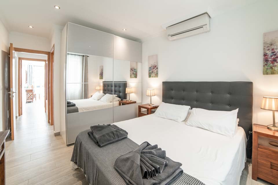 Kingsize-seng, klimaanlegg, dører til terrasse