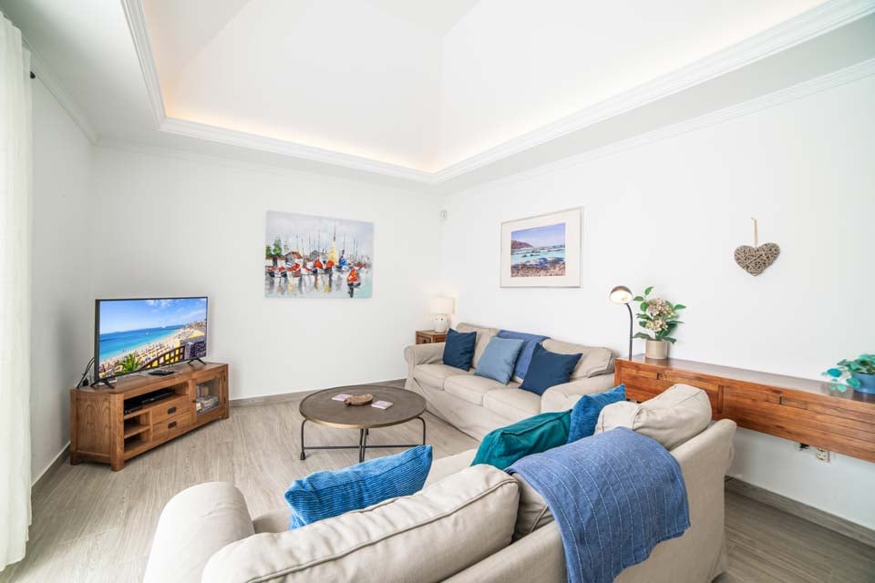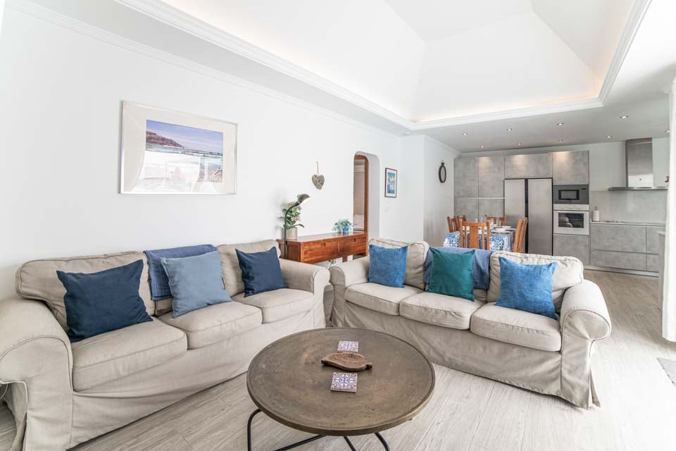 Komfortabel sittegruppe, Smart-TV, Åpen planløsning, Dører til terrasse