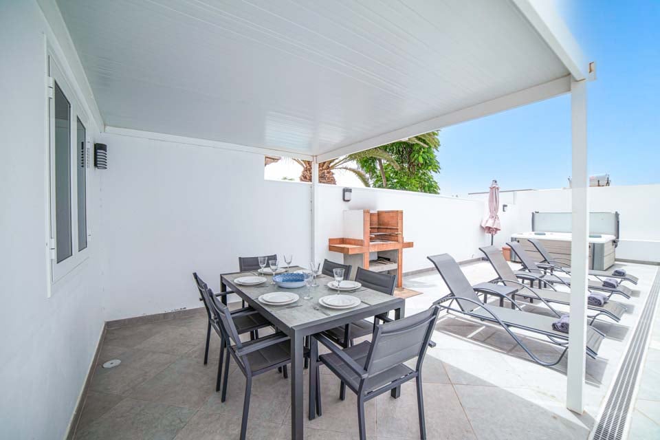 Har du lyst til å slappe av i ditt eget private boblebad mens solen skinner? Da trenger du ikke lete lenger enn til Villa Botanica. Denne store villaen med fire soverom er ideell for bestillinger på opptil åtte gjester. Terrassen er enorm, med en stor åpen uteplass, et vakkert designet basseng med et grunt sitteområde og ditt eget boblebad inkludert i prisen for oppholdet. Med store trær for naturlig skygge finner du koselige sitteplasser under palmene, noe som skaper et eksotisk sted for morgenkaffen eller ettermiddagscocktailen.