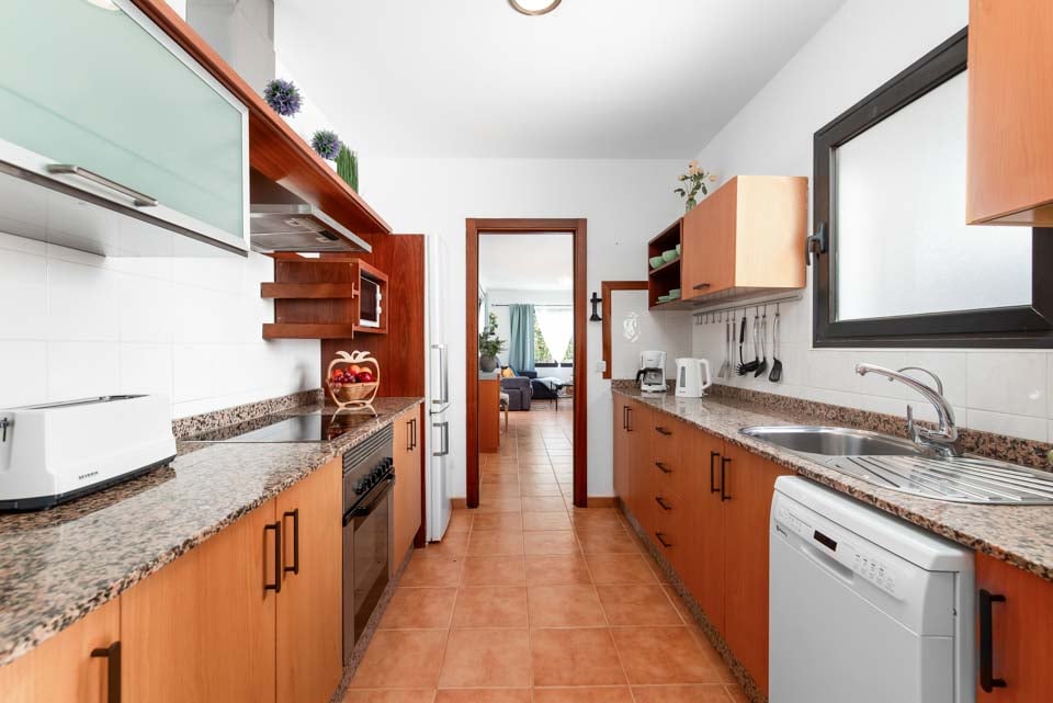 Når du kommer inn i eiendommen, blir du møtt av en innbydende stue/spisestue med hjørnesofa og flatskjerm-TV med internasjonale kanaler. Villaen har et separat kjøkken med alt du trenger for å tilberede noen lokale delikatesser.