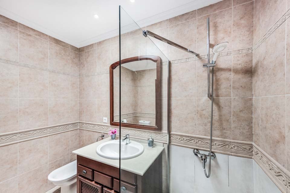 For å komme til villaen er det en 90 cm lang sti med to trinn. Inngangsdøren har en bredde på 166 cm. Utsiden er en åpen, flislagt terrasse som er flat. Selve bassenget har trinntilgang med fire trinn. De doble terrassedørene er hovedinngangen til villaen med ett lite trinn som måler omtrent 5 cm høyt. Inne i villaen er den bredeste soveromsdøren i første etasje 70 cm bred, og den bredeste baderomsdøren i første etasje er også 70 cm bred. Dette er en eiendom i første etasje. *Vær oppmerksom på at selv om vi har gjort vårt ytterste for å sikre at informasjonen som gis er nøyaktig, kan det forekomme feil. Hvis du trenger mer spesifikk informasjon om villaen, ikke nøl med å kontakte oss.