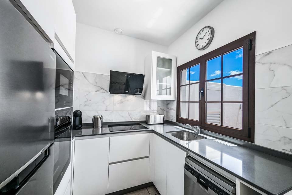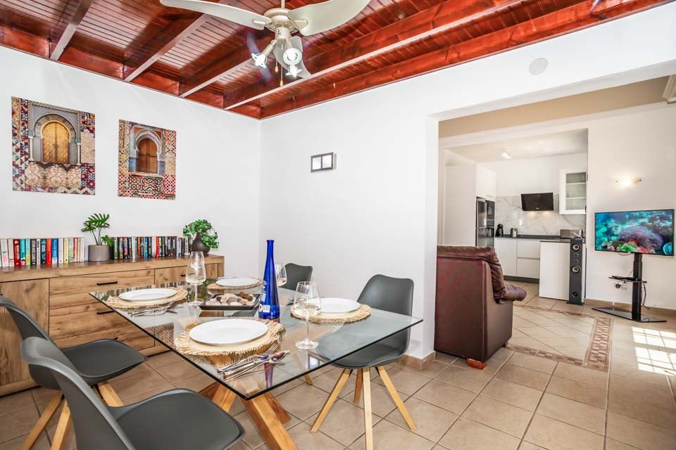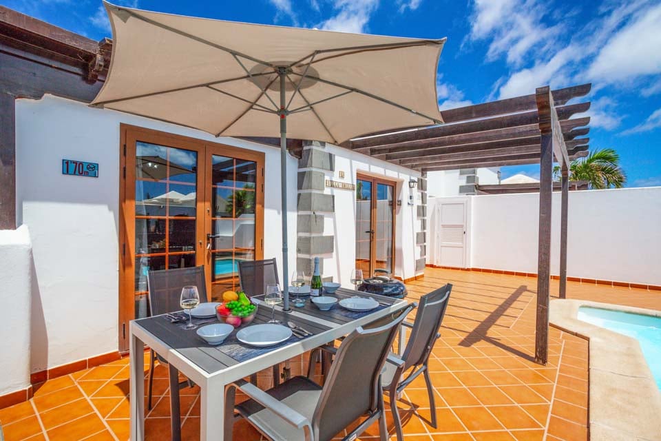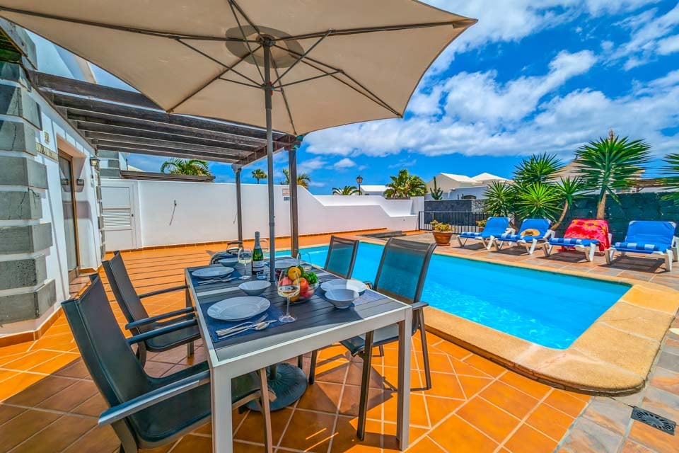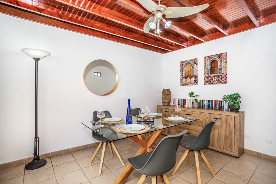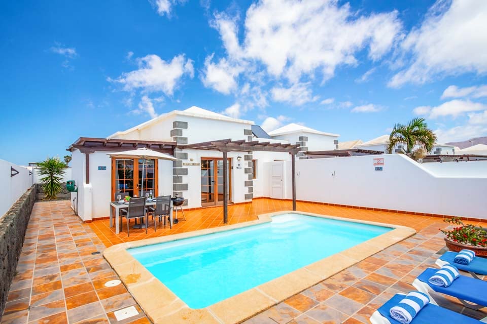 Villa Emilia handler om sin intime utendørs atmosfære, med en bortgjemt terrasse med terrakottafliser helt for deg selv. Med 300 soldager i året over hele Kanariøyene kan du slappe av på solsengene og nyte det endeløse solskinnet. For den ultimate late ettermiddagen, ta et plask i det glitrende svømmebassenget for å unnslippe varmen. Følg de doble franske dørene til koselig interiør – med moderne innredning, tretak og innbydende fargetoner som fyller villaen med en følelse av varme. De to doble soverommene, den romslige stuen, spisestuen og det moderne kjøkkenområdet er spredt over én etasje, og danner en intim villaferie. Når kvelden siver inn, kan vi ikke tenke oss et bedre sted å se solnedgangen enn med middag og drikke i den utendørs spiseområdet.