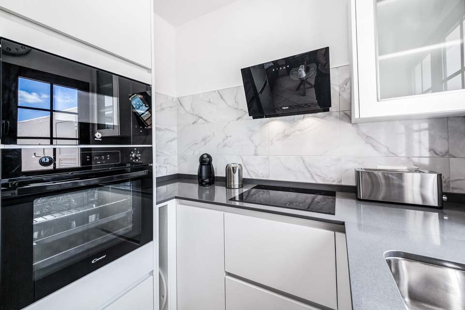Oppvaskmaskin, kjøleskap med fryser, koketopp, mikrobølgeovn, stekeovn