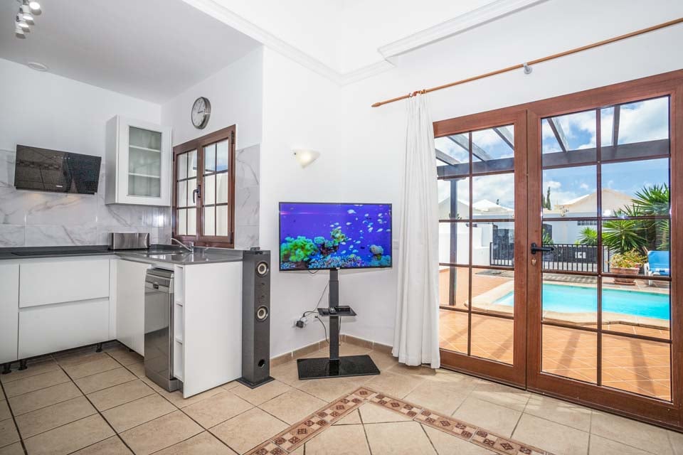 For en smak av Lanzarote er Villa Emilia den perfekte basen for en liten familie eller et par som ønsker en koselig ferie på denne solfylte øya. Denne sjarmerende villaen ligger i det pittoreske nabolaget Parque del Rey på øyas sørspiss, og er et idyllisk opphold vekk fra kjas og mas. For å få litt av begivenhetene, ligger det travle sentrum av Playa Blanca bare en femten minutters spasertur unna, hvor du vil bli bortskjemt med valgmuligheter når det gjelder fasiliteter. Berik smaksløkene dine på en førsteklasses restaurant, let etter suvenirer i butikker eller smak på tradisjonelle drinker i en bar.