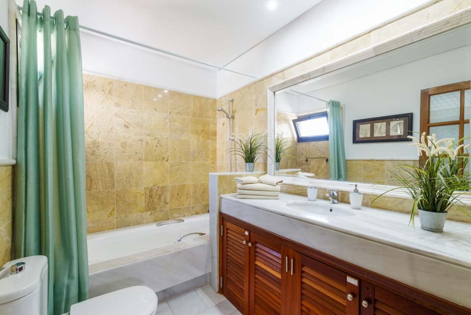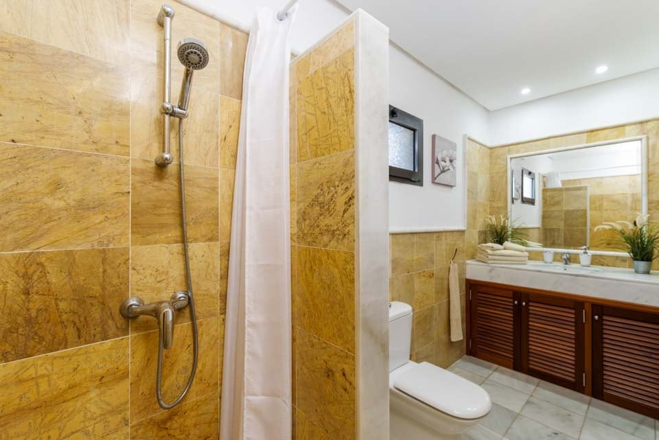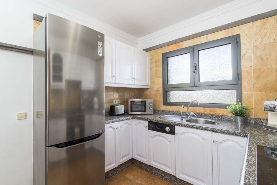 For å komme til villaen er det en 98 cm bred sti langs ett trinn. Inngangsdøren har en bredde på 80 cm, mens døren til terrassen er 125 cm bred. Terrasseområdet er flatt og flislagt, mens det er en liten skråning fra terrassedørene til terrassen. Selve bassenget krever trinntilgang. Dette er en eiendom i første etasje hvor både soverom og bad har en dørbredde på 70 cm. Døren inn til kjøkkenet er 80 cm bred, mens døren inn til stuen er 125 cm bred. *Vær oppmerksom på at selv om vi har gjort vårt ytterste for å sikre at informasjonen som gis er nøyaktig, kan det forekomme feil. Hvis du trenger mer spesifikk informasjon om villaen, ikke nøl med å kontakte oss.
