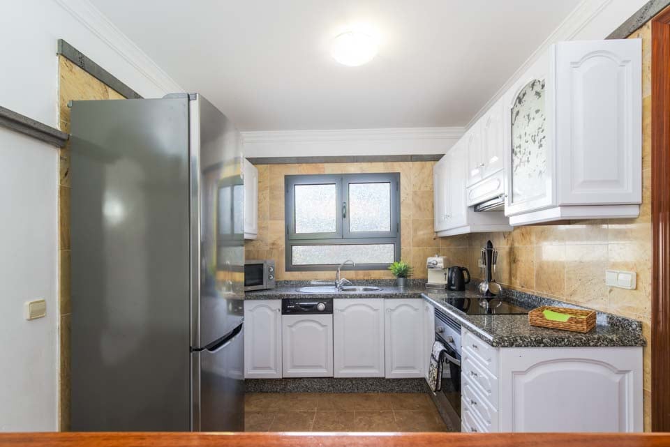 Inne blir du møtt av et fullt utstyrt kjøkken for det ultimate selvhusholdningsoppholdet. Denne romslige villaen har også tre soverom og to bad som passer for opptil seks gjester, noe som gjør den til et flott utgangspunkt for en solferie med familie og venner.