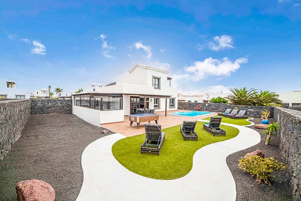 Hvis du er ute etter et retrett på Lanzarote i Playa Blanca, kan Villa Hermosa være akkurat det du leter etter. Denne vakre villaen ligger i Montana Roja-området i Playa Blanca, en kort spasertur fra en rekke butikker, nærbutikker, tapasbarer og restauranter. For dager på stranden kan du velge mellom den lokale, rustikke Montana Roja-stranden, sandstranden Playa Flamingo eller den store Playa Dorada midt i sentrum.