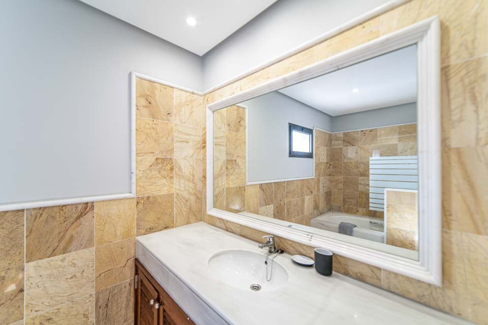 Denne villaen ligger i et stort sett flatt område. For å komme til villaen er det en sti som er 122 cm bred med 3 trinn. Inngangsdøren har en bredde på 80 cm. Døren fra villaen til bassengterrassen er 158 cm bred. Stiene fra villaen til bassengområdet er 100 cm brede, uteområdet er for det meste asfaltert og flatt. Døren inn til kjøkken/spisestue er 74 cm bred, og døren inn til stuen er 74 cm bred. Den bredeste soveromsdøren i første etasje er 70 cm bred, og døren til badet er 70 cm bred. Dette badet har badekar med dusj over. Det er 18 trinn til andre etasje. Den bredeste soveromsdøren i andre etasje er 70 cm bred, og døren til badet er 70 cm bred. Dette badet har badekar med dusj over. *Vær oppmerksom på at selv om vi har gjort vårt ytterste for å sikre at informasjonen som gis er nøyaktig, kan det forekomme feil. Hvis du trenger mer spesifikk informasjon om villaen, ikke nøl med å kontakte oss.