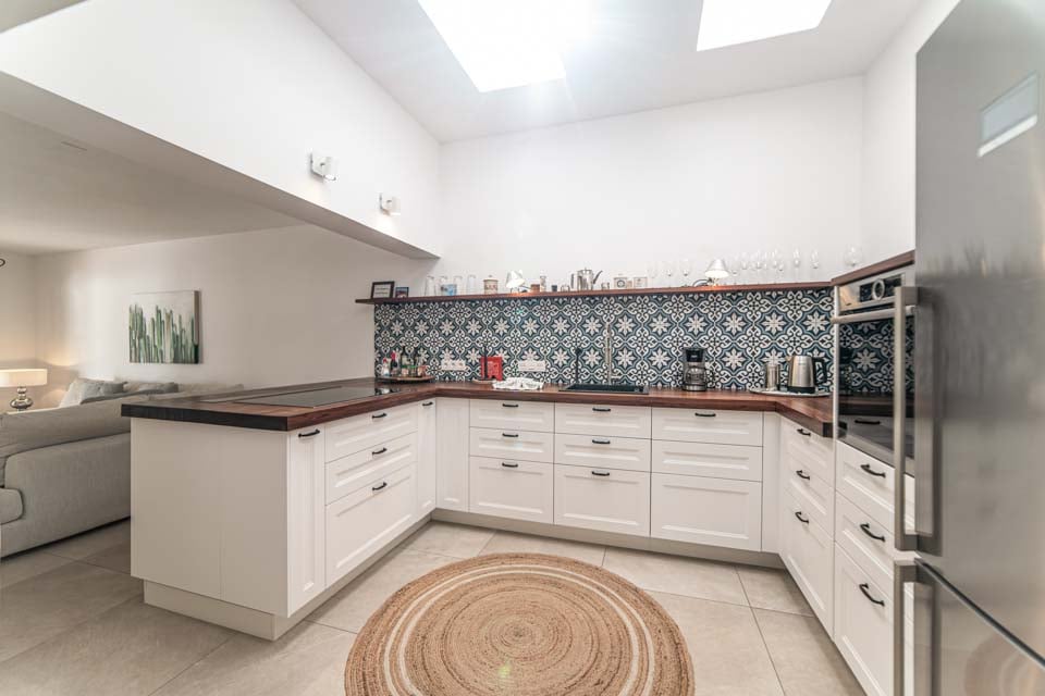 Innvendig har det fullt utstyrte kjøkkenet moderne fasiliteter, inkludert oppvaskmaskin for enkelhets skyld, mens vaskerommet tilbyr vaskemaskin og tørketrommel for å gjøre oppholdet ditt enda mer komfortabelt. En nydelig vinterhage bidrar til sjarmen, og tilbyr et avslappende sted med komfortable hagesofaer, ideelt for å slappe av om kveldene eller nyte et stille øyeblikk.