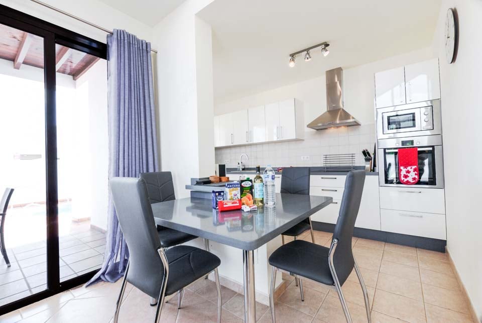 Innvendig er villaen fullt utstyrt med alt du trenger for en selvhusholdningsferie, inkludert soverom med klimaanlegg, oppvaskmaskin, vaskemaskin og gratis bassenghåndklær under hele oppholdet.