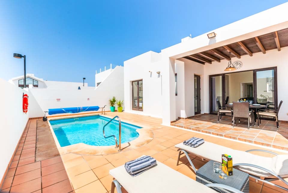 Denne villaen ligger en kort spasertur fra Playa Blanca sentrum, og har bil som tilleggsutstyr. Det er imidlertid mye å utforske på denne vakre vulkanøya, hvis du ønsker å leie en bil.