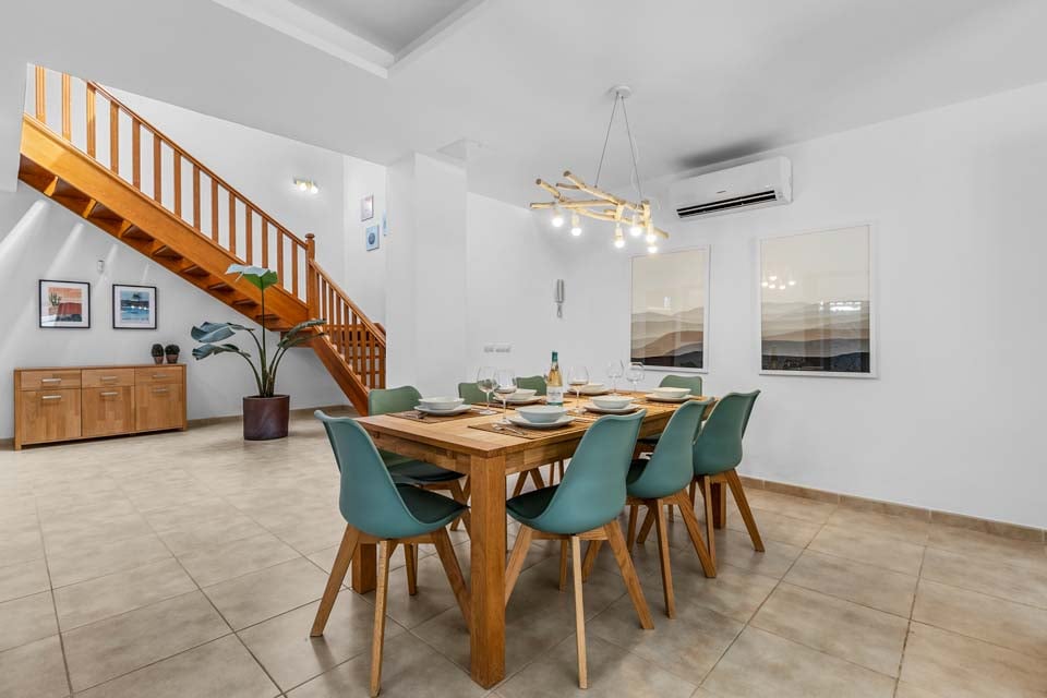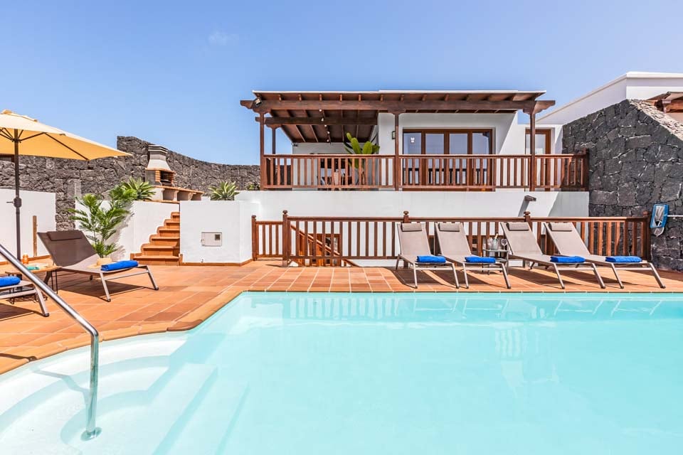 Si Hallo til Villa Rosalia. Denne eiendommen med bil (valgfritt) ligger i Playa Blanca, og er et godt valg for opptil åtte gjester. Med fire soverom fordelt på to etasjer, er denne villaen ideell for både venner og familier. Vi elsket terrassen, med det oppvarmede* bassenget i sentrum, omgitt av solsenger og en vulkansk vegg. For ekstra bekvemmelighet er det en dør som fører fra terrassen til stien utenfor, noe som gjør turer til butikk, strand og restauranter mye raskere. Noen få skritt til den øvre terrassen finner du det murbygde grill- og matlagingsområdet, som ligger ved siden av den skyggefulle utendørsserveringen.
