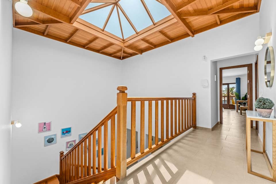 Du kommer inn i villaen i første etasje, via en liten utvendig trapp. Fordelt over to etasjer går du ned til underetasjen, hvor du finner et stort åpent kjøkken og stue. Dette enorme rommet er flott for underholdning! Det nyoppussede kjøkkenet har alle de nyeste hvitevarene, samt en frokostbar for morgenkaffen, en smart-TV og kjølig klimaanlegg. For de som liker å holde seg i form på ferie, finnes det et treningsområde like ved kjøkkenet.
