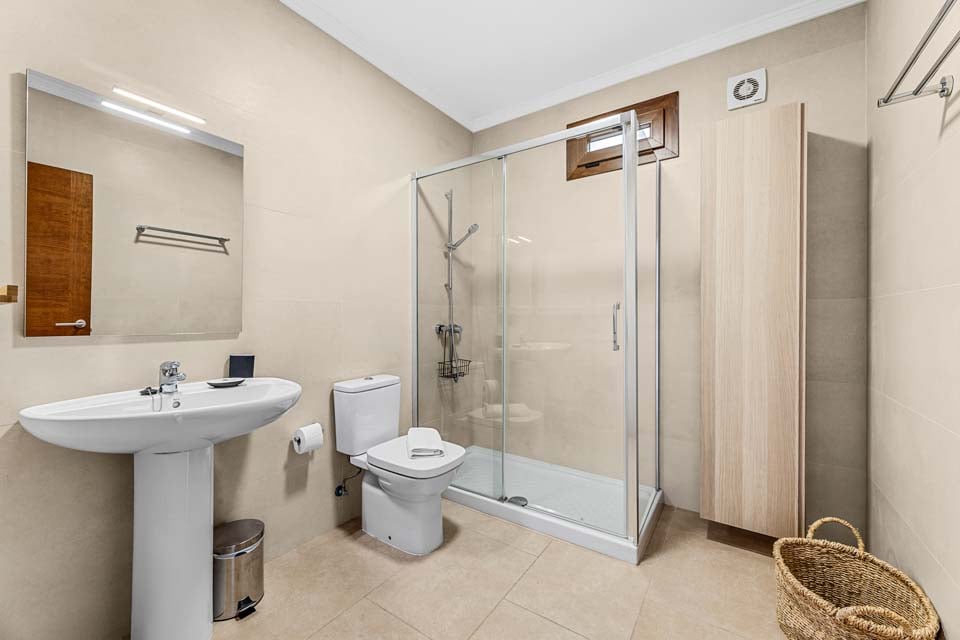 Denne villaen ligger i et litt kupert område av Playa Blanca. For å komme til villaen er det en sti som er 122 cm bred sammen med 19 trinn. Inngangsdøren har en bredde på 89 cm, mens døren til terrassen er 122 cm bred. Terrassen er åpen og flislagt med 8 trinn ned til bassengkanten. Som det kan sees på bildene, er terrassen over to etasjer. Selve bassenget har trinntilgang med rekkverk for støtte. Du kommer inn i eiendommen i første etasje. Døren til hovedsoverommet i første etasje er 69 cm bred, mens døren til badet også er 69 cm bred. Døren inn til kjøkken/spisestue er 97 cm bred, og døren inn til stuen er også 97 cm bred. *Vær oppmerksom på at selv om vi har gjort vårt ytterste for å sikre at informasjonen som gis er nøyaktig, kan det forekomme feil. Hvis du trenger mer spesifikk informasjon om villaen, ikke nøl med å kontakte oss.