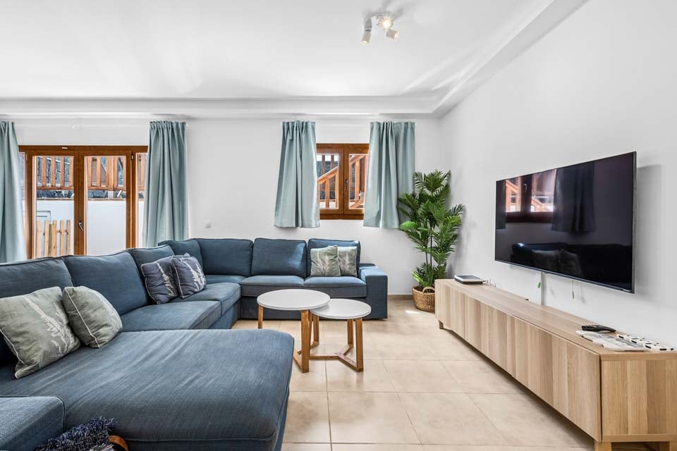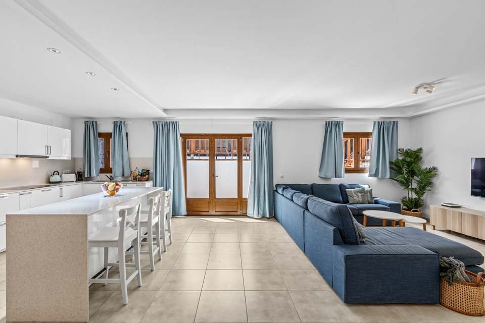 Komfortabel sittegruppe, Smart-TV, Åpen planløsning, Dører til terrasse, Klimaanlegg
