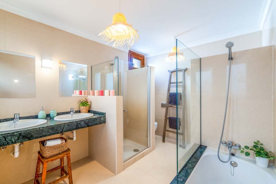 Badekar med dusj over, Dobbel servant, Dusj, Toalett