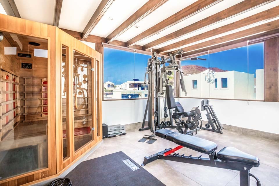 Treningsutstyr, badstue, flatskjerm-TV