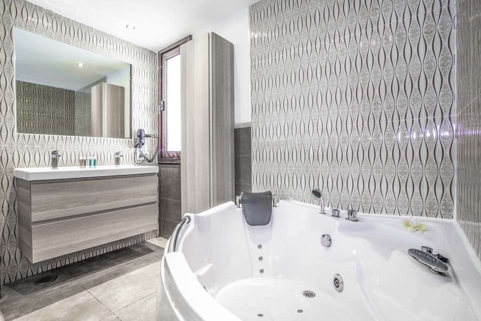Vær oppmerksom på at boblebadet som kan sees på bildene kun må brukes som et standard badekar.