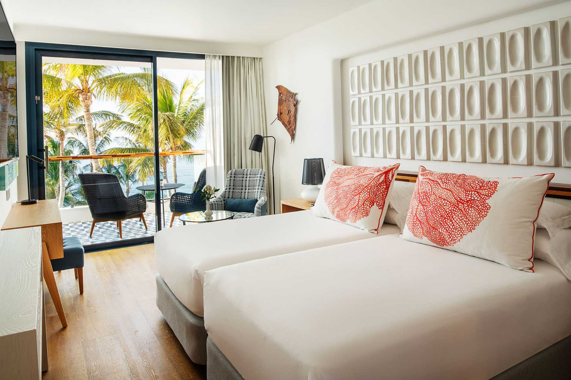 Juniorsuite superior med balkong og havutsikt. På balkongen er det en jacuzzi og solsenger. To enkeltsenger. Putemeny. Wifi, luftkondisjonering og safe inkludert. Kjøleskap. Vannkoker samt kaffe og te. TV. Hårføner. Badekåper og tøfler Baderom med dusj og wc. Rengjøring 7 ggr/uke.