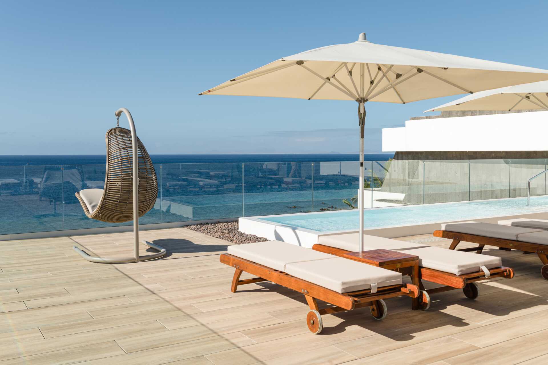 I tillegg tilbyr Fariones Suites Hotel den beste mulige beliggenheten. Rett ved siden av hotellet finner du sandstranden Playa Grande og hovedgaten Avenida de las Playas i Puerto del Carmen. Her bor du i en luksuriøs suite mens du aktive dager og avslappende stunder i solen. Det fine bassengområdet har et basseng og et separat barnebasseng, og bassenget er oppvarmet om vinteren til minst 22 grader. Ved bassengområdet er det en poolbar, solsenger, parasoller og bassenghåndklær til utlån. Det finnes et annet bassengområde på taket med solsenger og et lite basseng, men det er kun tilgjengelig for gjester som bor i superiorsuitene.