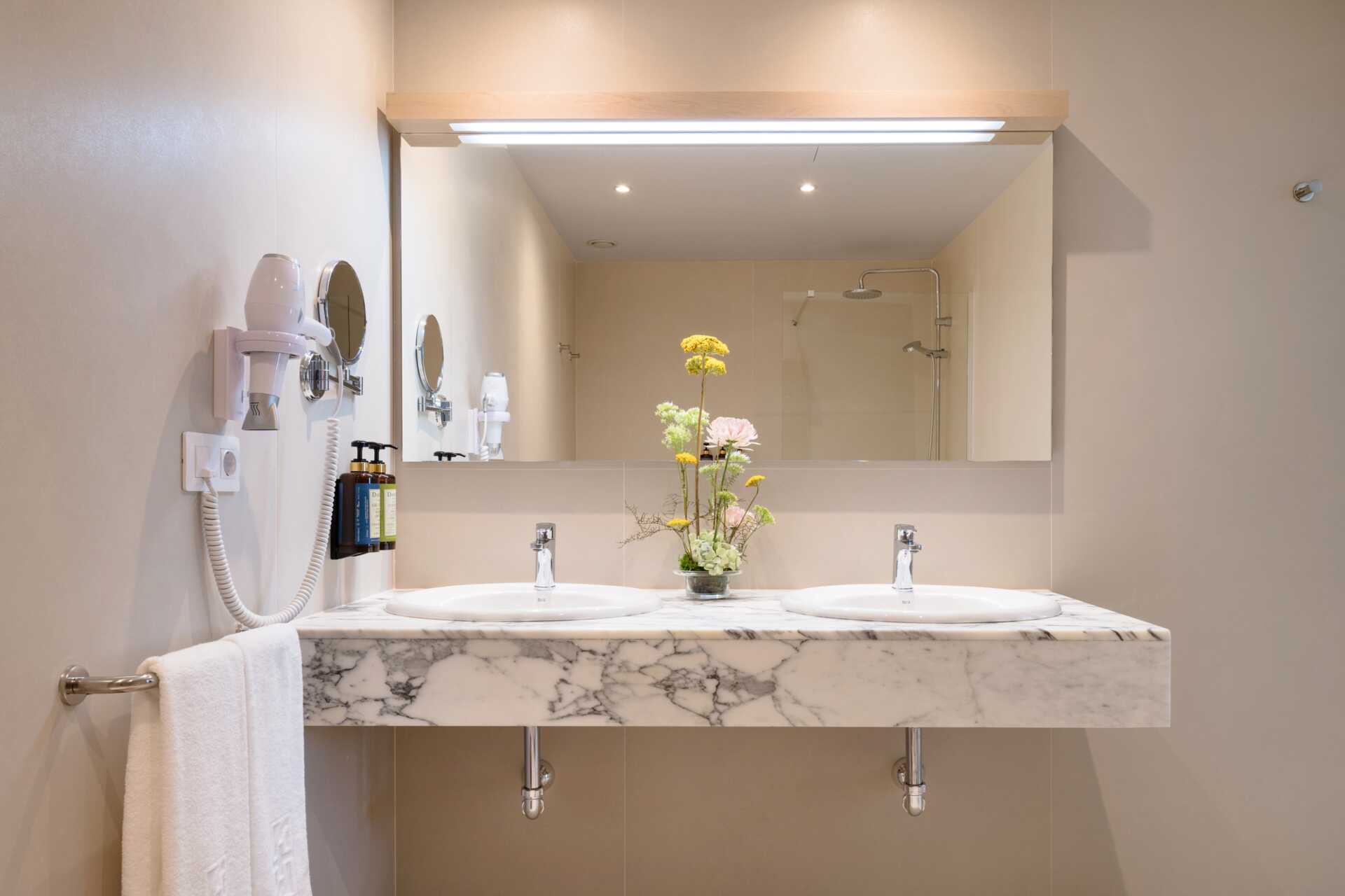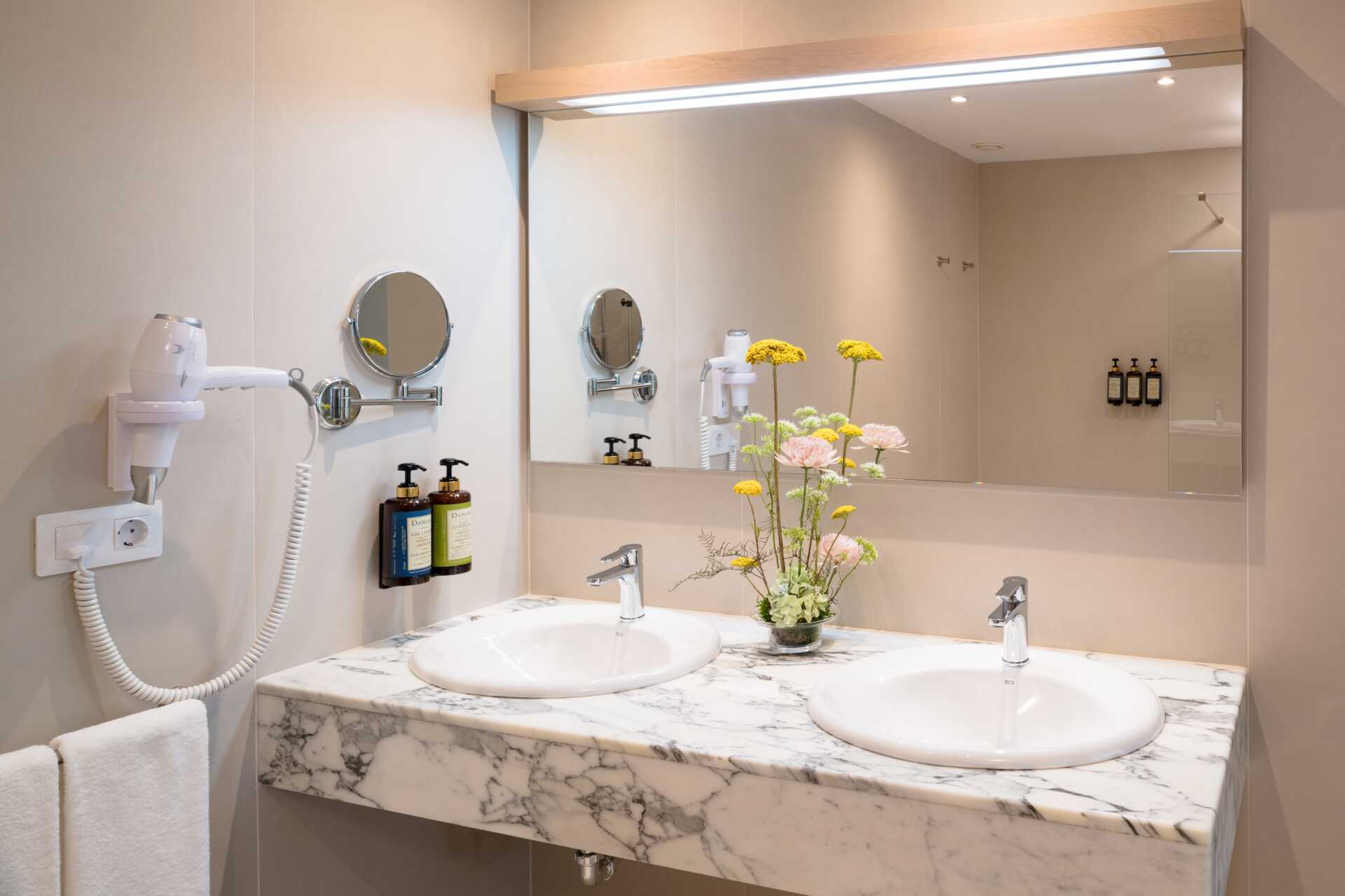 Suiten består av et soverom og en stue med noen få trappetrinn mellom delene. En dobbeltseng eller to enkeltsenger. Mulig med en ekstraseng i sovesofa. Minibar – som daglig etterfylles med vann, brus og øl. Vannkoker. Kaffemaskin - kapsler inkludert og etterfylles daglig. Wifi, luftkondisjonering og safe inkludert. TV. Badekåper og tøfler Hårføner. Dusj og wc. Rengjøring 7 ggr/uke.