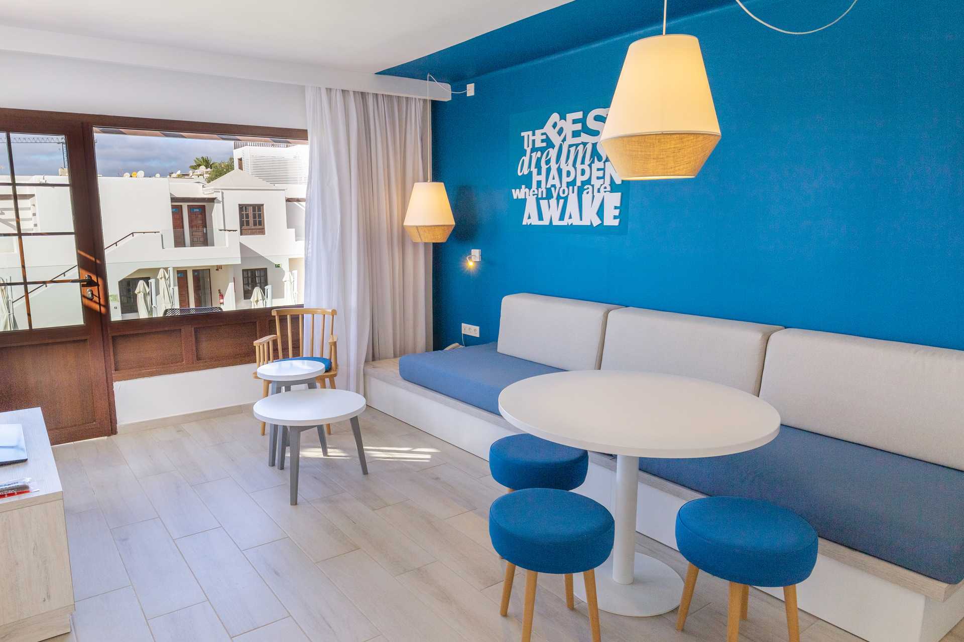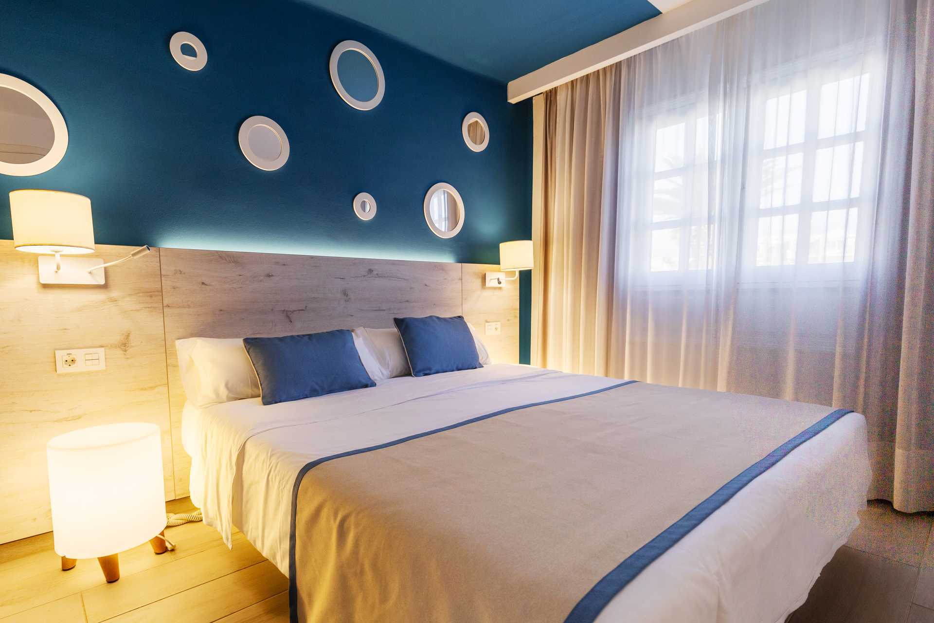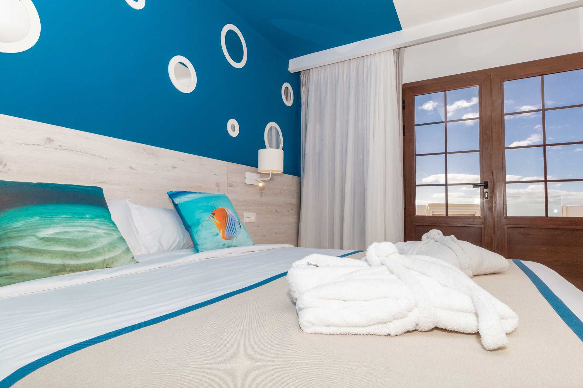 Toromsleilighet med balkong eller terrasse, noen med balkong og havutsikt. Et soverom og stue med minikjøkken. En dobbeltseng. Mulig med en ekstraseng i sovesofa. Minikjøkken med kokeplater, lite kjøleskap, kaffetrakter, brødrister, mikrobølgeovn og enkel kjøkkenutstyr. Luftkondisjonering inkludert. Wifi og safe mot avgift. TV. Hårføner. Baderom med dusj og wc. Rengjøring 3 ggr/uke. Barn under 2 år regnes inn i maksantallet i leiligheten.