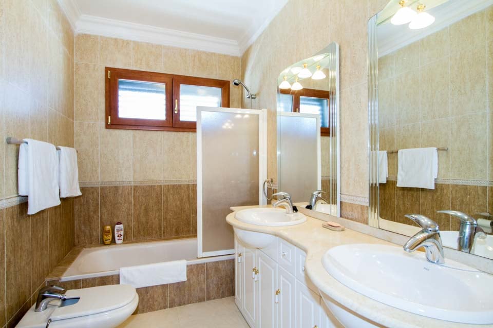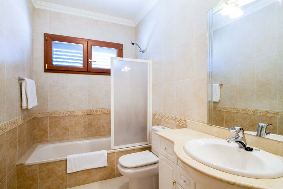 For å komme til villaen er det en 80 cm bred sti sammen med fire trinn. Inngangsdøren har en bredde på 75 cm, mens døren til terrassen er 200 cm bred. Som det kan sees på bildene, er det trapper ned fra villaen til bassengområdet. Terrassen er flislagt, og selve bassenget har trinntilgang. Dette er en eiendom i første etasje. Alle soverommene har en dørbredde på 68 cm, mens alle badene har en dørbredde på 68 cm. Døren inn til kjøkken/spisestue er 72 cm bred, og døren inn til stuen er 122 cm bred. *Vær oppmerksom på at selv om vi har gjort vårt ytterste for å sikre at informasjonen som gis er nøyaktig, kan det forekomme feil. Hvis du trenger mer spesifikk informasjon om villaen, ikke nøl med å kontakte oss.