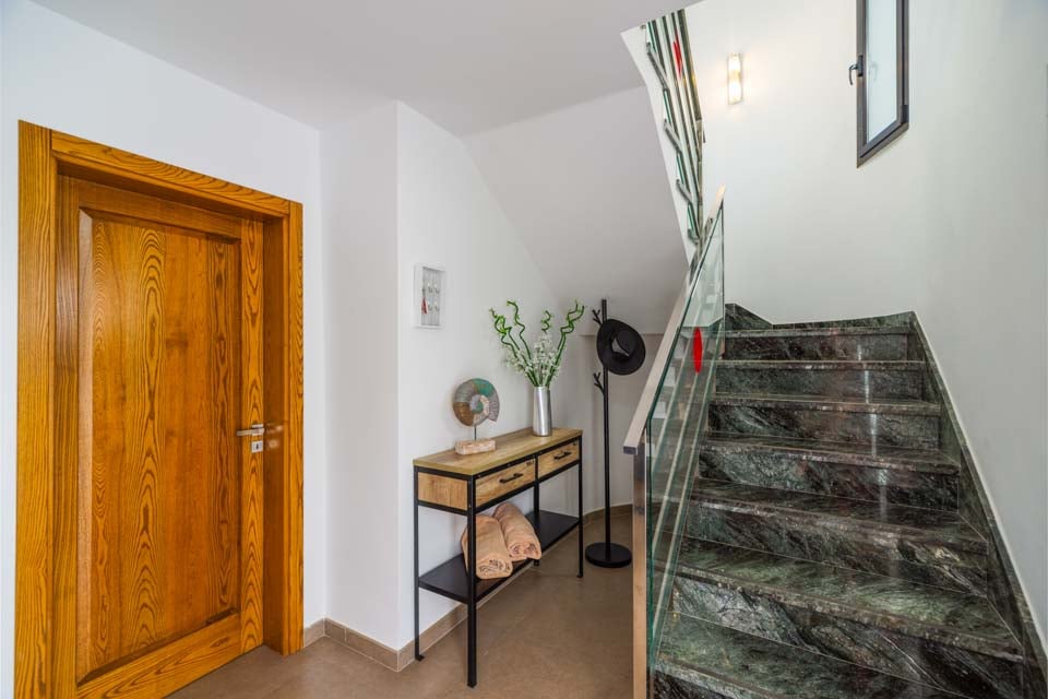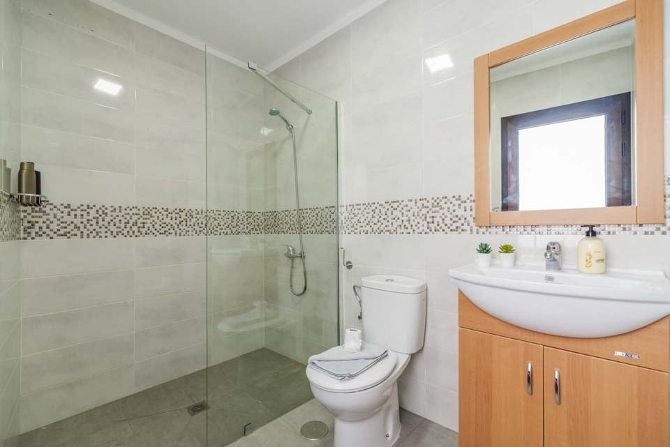 Vær oppmerksom på at denne villaen ligger i et kupert område. Villaen ligger på en ås inne i feriestedet. For å komme til villaen er det en sti som er 200 cm bred. Inngangsdøren har en bredde på 78 cm, mens døren til terrassen er 200 cm bred. Uteområdet er flatt og flislagt, mens selve bassenget har trinntilgang med et rekkverk for støtte. Det er ingen soverom i første etasje. Det er 16 trinn til første etasje, hvor dørene til soverommet med to enkeltsenger og dusjrommet er 72 cm brede. Døren inn til kjøkken/spisestue er 74 cm bred, og døren inn til stuen er også 74 cm bred. *Vær oppmerksom på at selv om vi har gjort vårt ytterste for å sikre at informasjonen som gis er nøyaktig, kan det forekomme feil. Hvis du trenger mer spesifikk informasjon om villaen, ikke nøl med å kontakte oss.