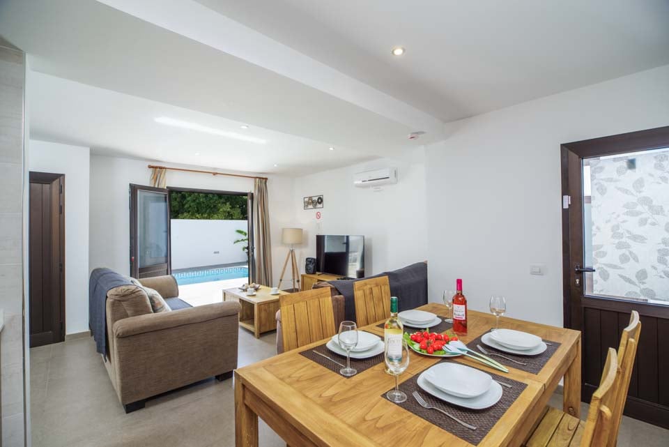 Med to soverom med klimaanlegg er denne villaen ideell for opptil fire gjester. Begge soverommene ligger i første etasje og har tilgang til en felles vinterhage i første etasje, med fantastisk havutsikt over Atlanterhavet. Hvis du ser nøye etter, kan du til og med se naboøya Fuerteventura. Villaen er fullt utstyrt med alle hvitevarer du forventer på en selvhusholdningsferie, inkludert vaskemaskin, oppvaskmaskin og smart-TV.