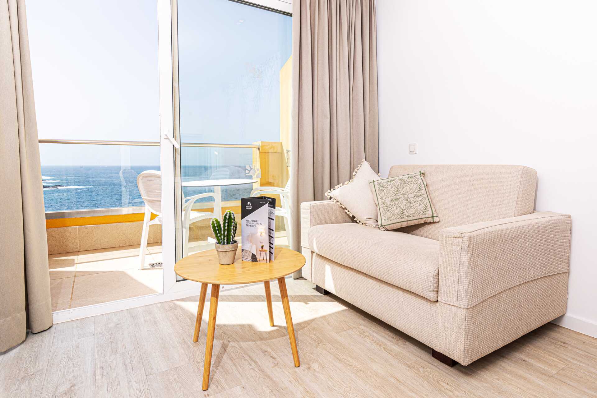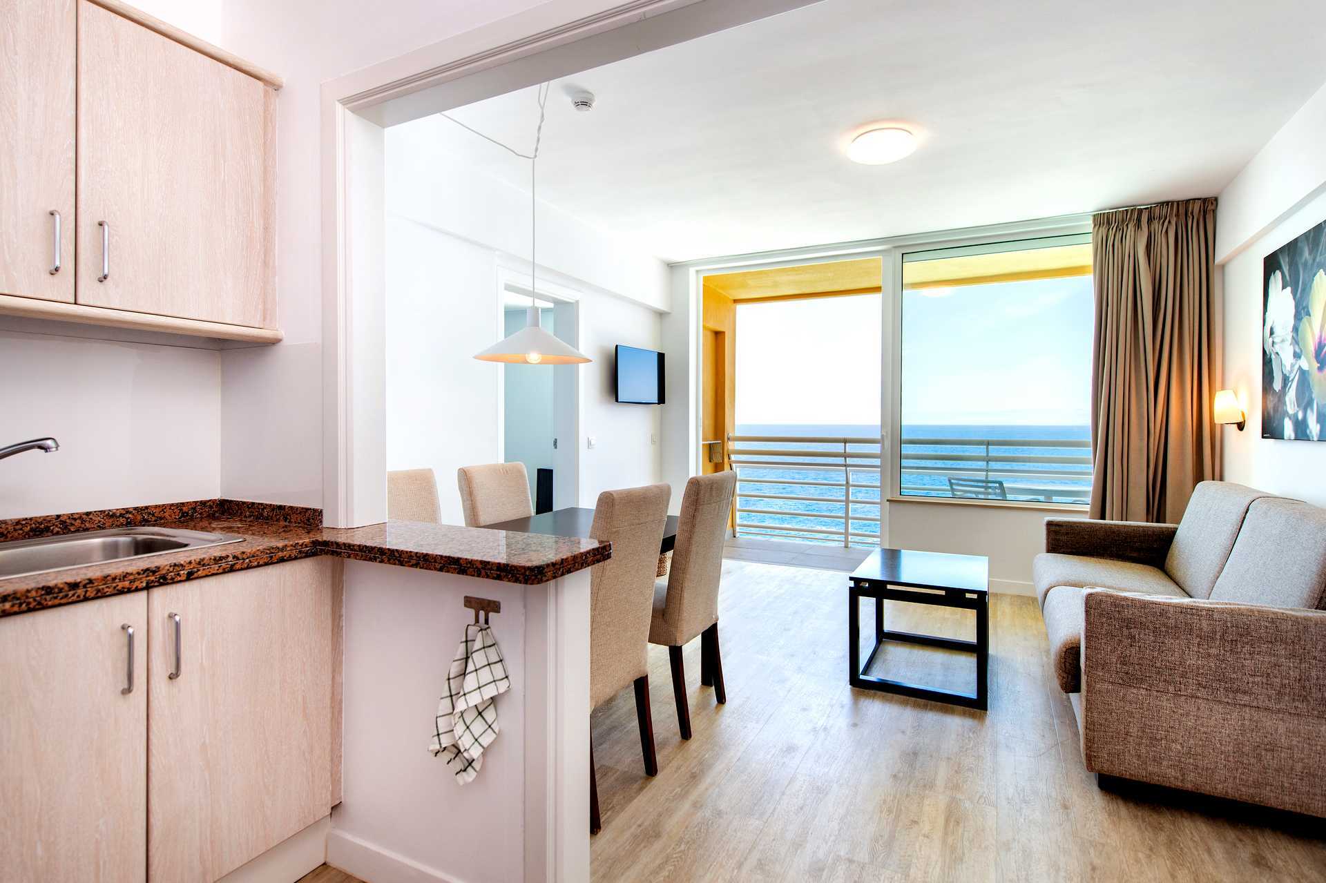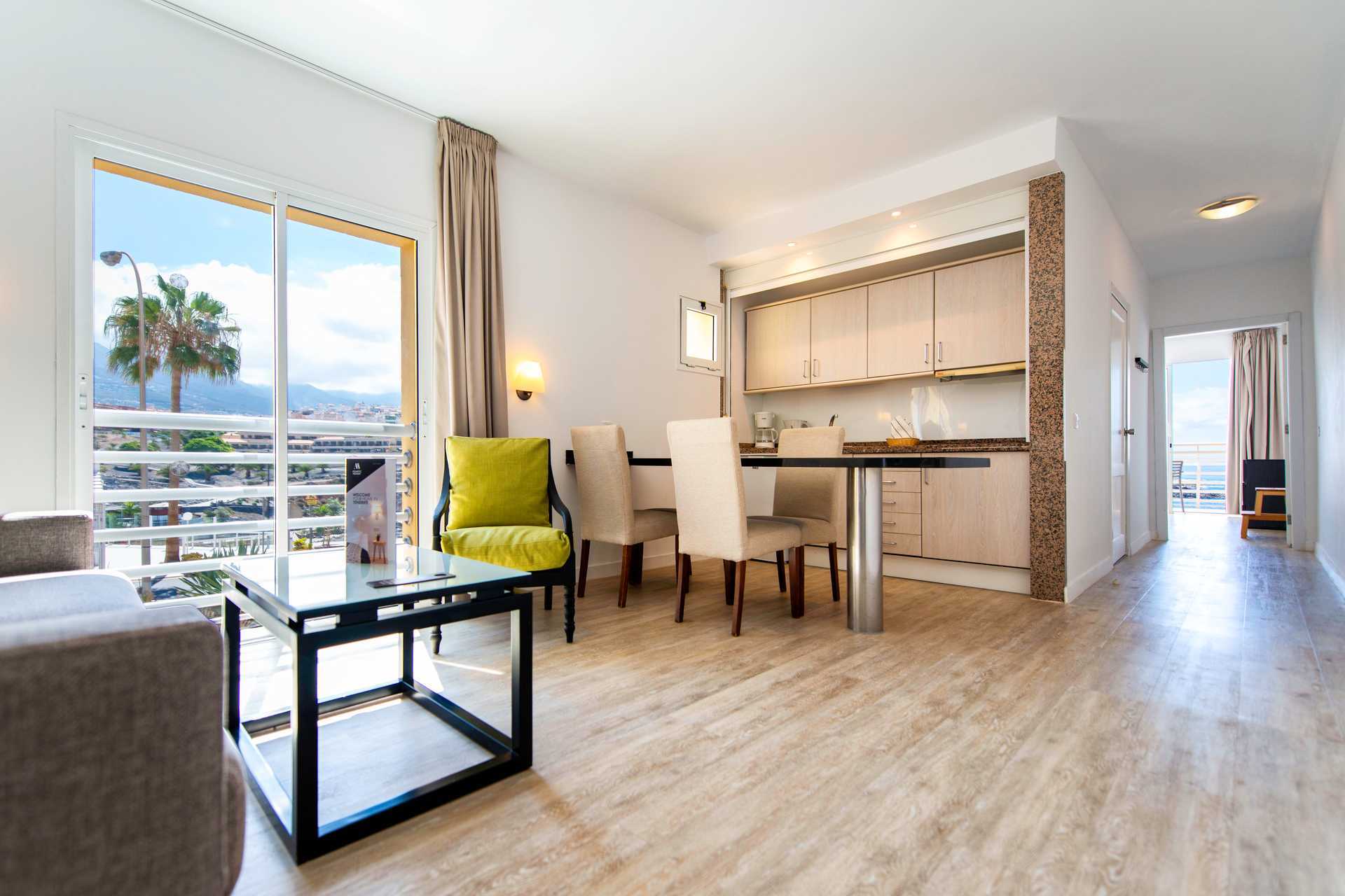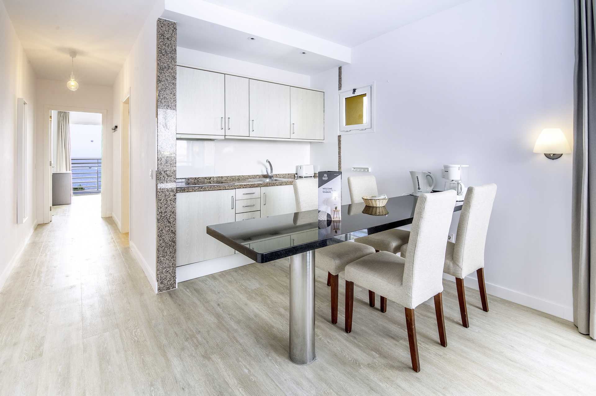 Toromsleilighet superior med balkong og havutsikt. Et soverom og en stue med minikjøkken. En dobbeltseng eller to enkeltsenger. Mulig med en ekstraseng i sovesofa. Kjøkkenet har oppvaskmaskin, mikrobølgeovn, kokeplater, vannkoker, kaffetrakter, brødrister, kjøleskap og enkelt kjøkkenutstyr. Wifi inkludert. Safe mot avgift. TV med skandinaviske og internasjonale kanaler. Hårføner, badekåper og bassenghåndklær. Dusj og wc. Rengjøring 5 ggr/uke.