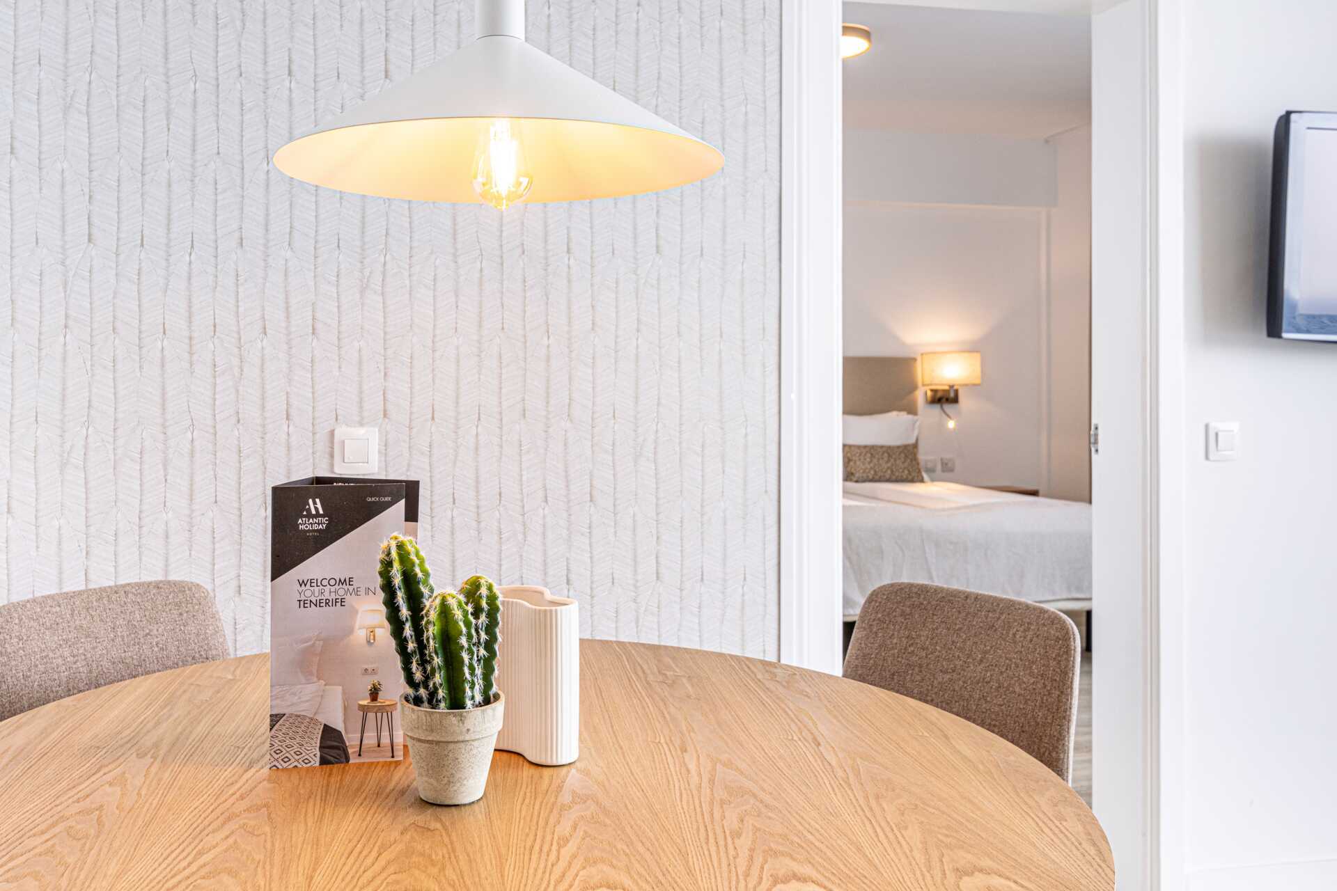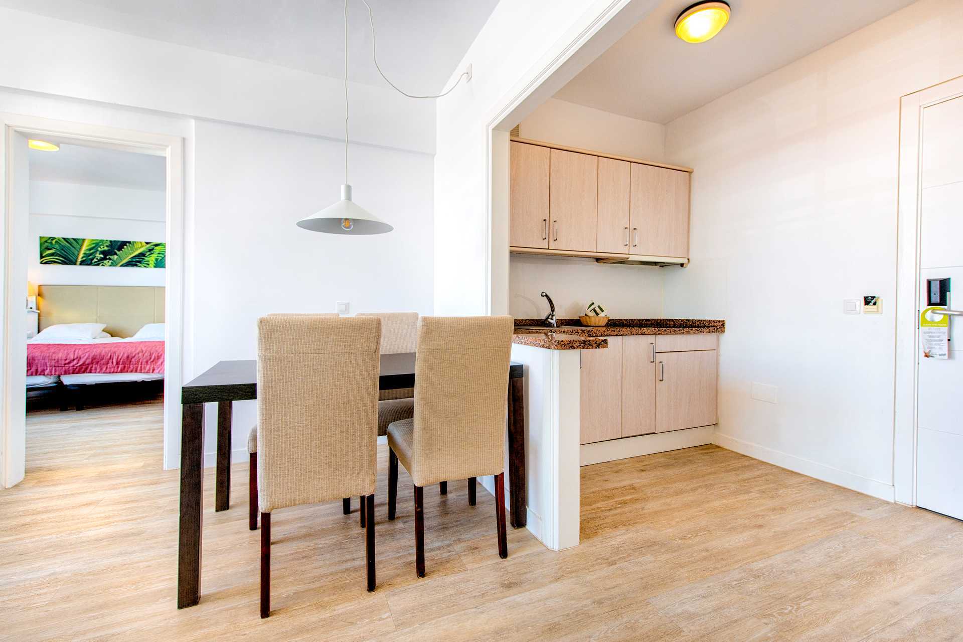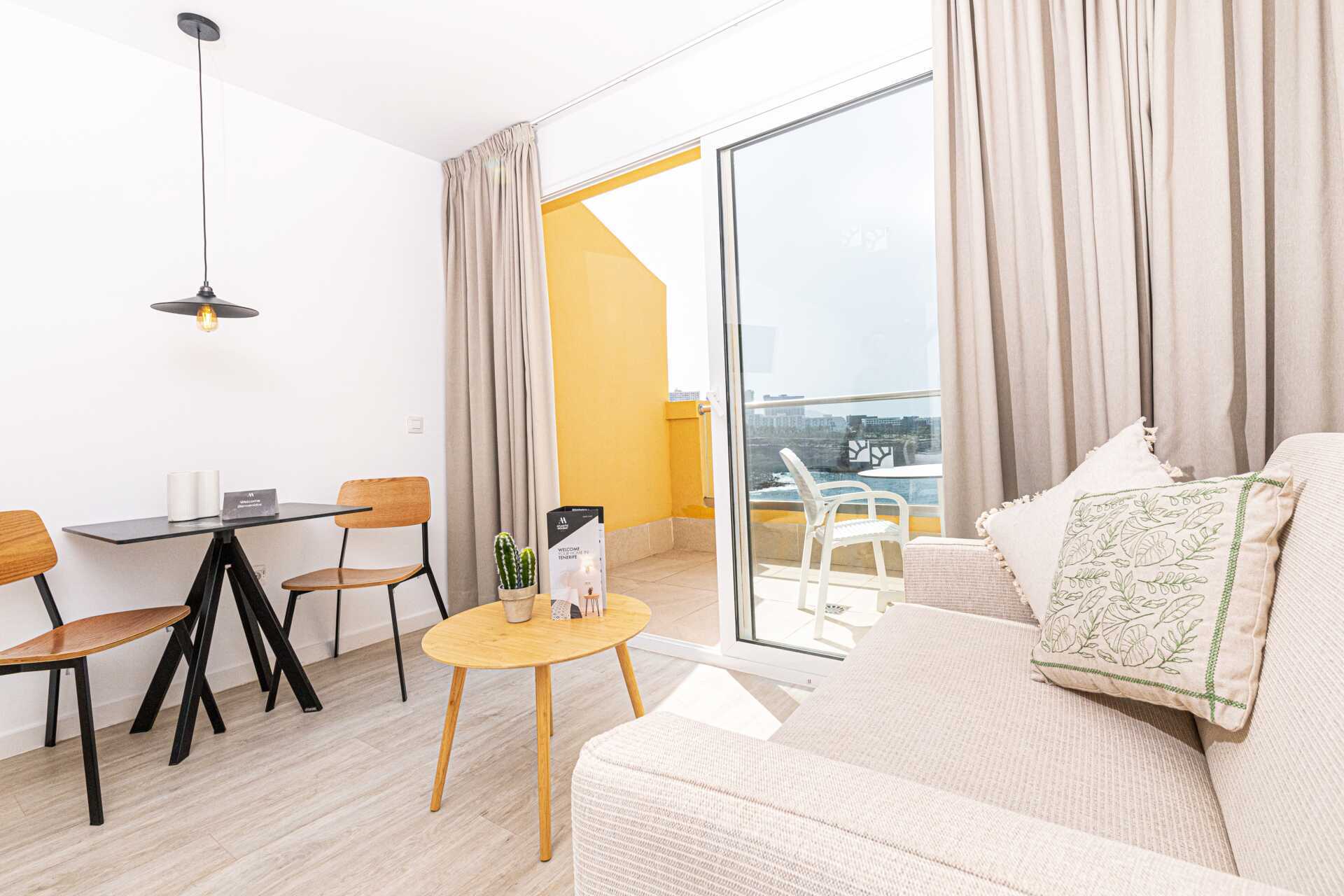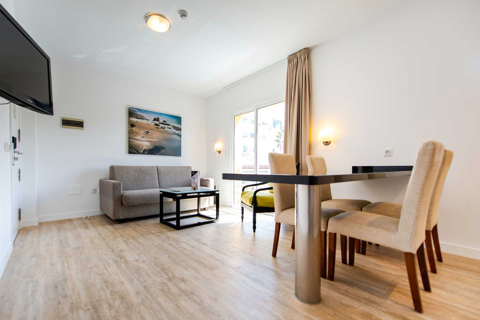 Toromsleilighet superior med balkong og havutsikt. Et soverom og en stue med minikjøkken. En dobbeltseng eller to enkeltsenger. Mulig med en ekstraseng i sovesofa. Kjøkkenet har oppvaskmaskin, mikrobølgeovn, kokeplater, vannkoker, kaffetrakter, brødrister, kjøleskap og enkelt kjøkkenutstyr. Wifi inkludert. Safe mot avgift. TV med skandinaviske og internasjonale kanaler. Hårføner, badekåper og bassenghåndklær. Dusj og wc. Rengjøring 5 ggr/uke.
