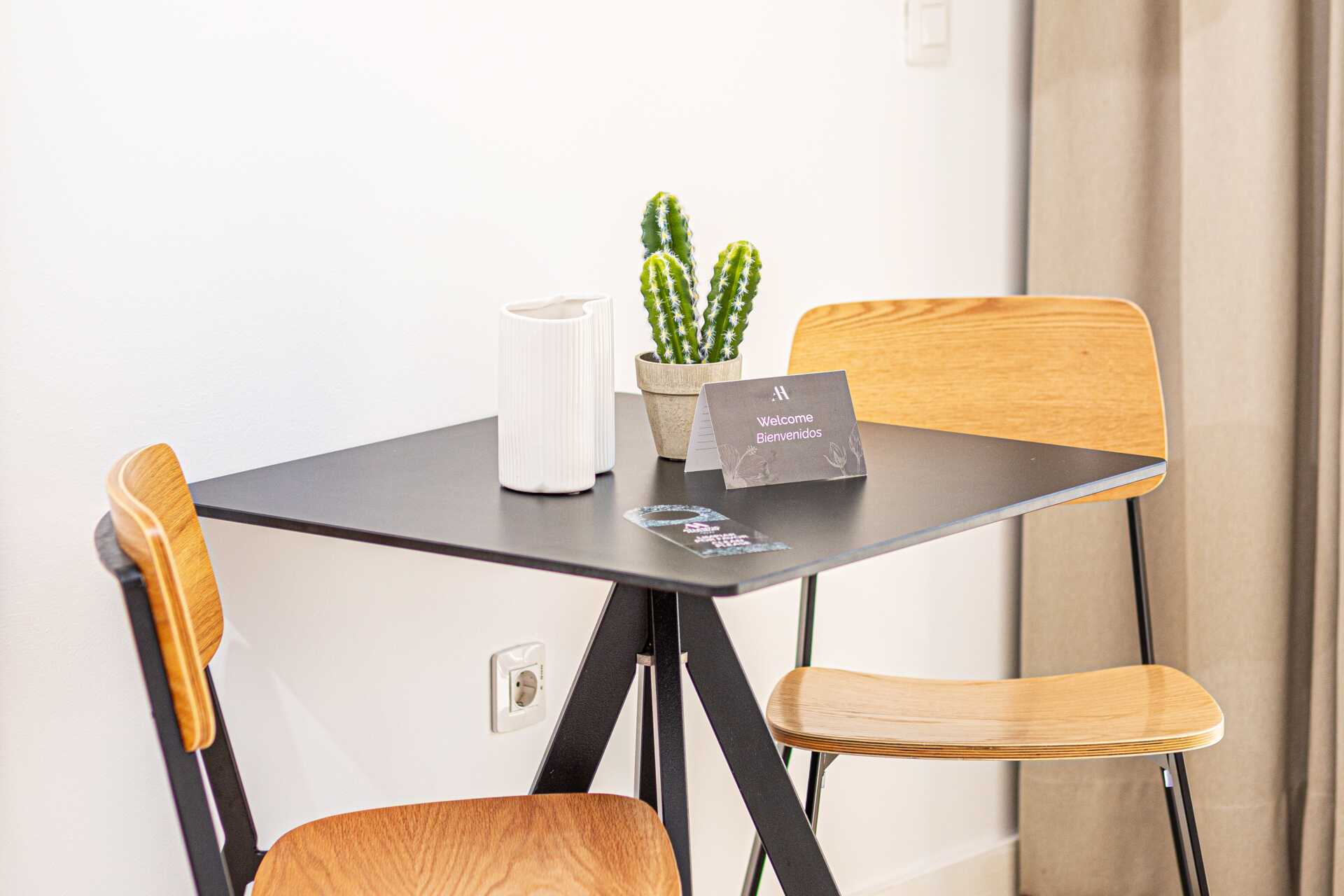 Toromsleilighet med balkong, men litt dårligere beliggenhet over personalinngangen. Et soverom og en stue med minikjøkken. En dobbeltseng eller to enkeltsenger. Mulig med en ekstraseng i sovesofa. Minikjøkken med kokeplater, kjøleskap, vannkoker, kaffetrakter, brødrister og enkelt kjøkkenutstyr. Wifi inkludert. Safe mot avgift. TV. Hårføner. Dusj og wc. Rengjøring 5 ggr/uke.