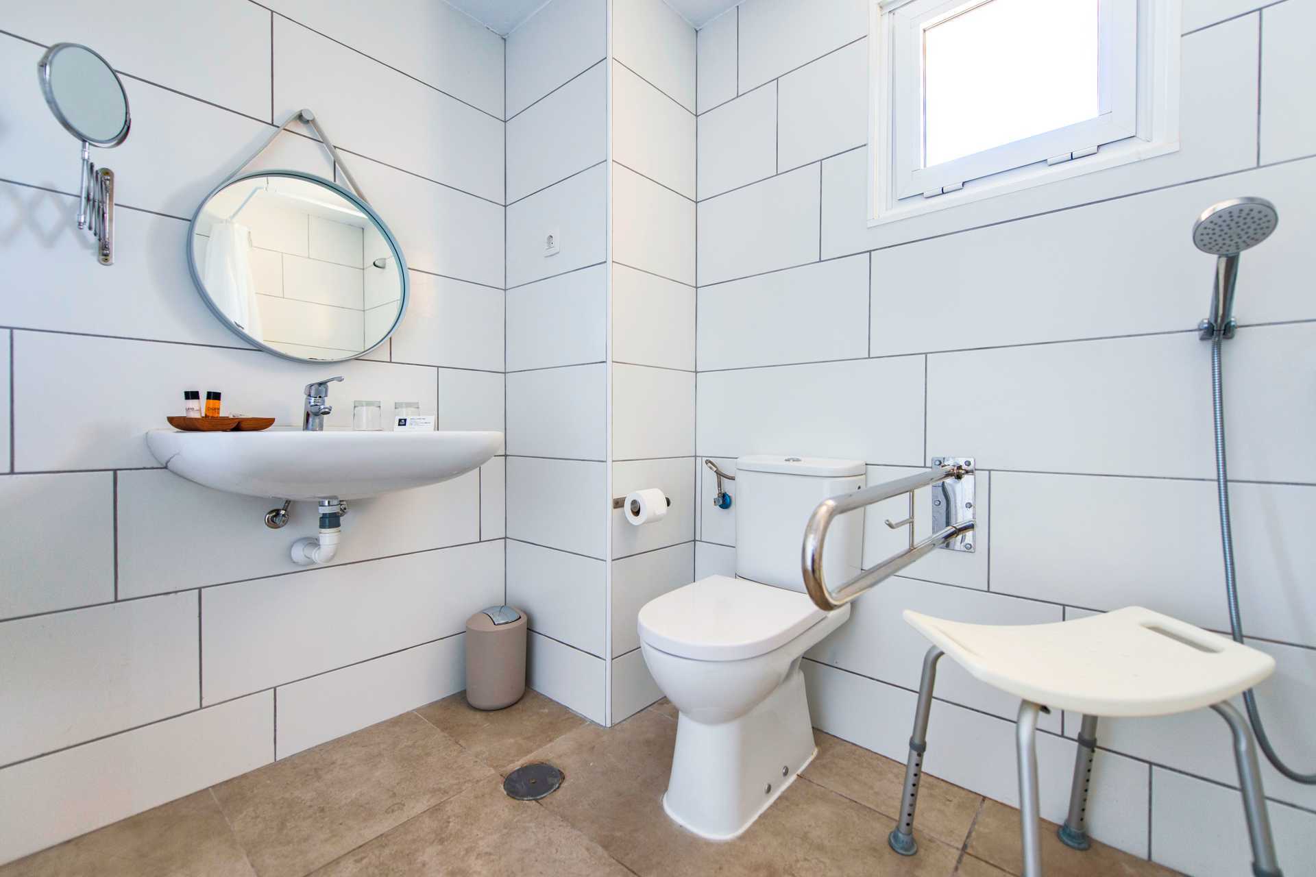 Handikapptilpassede toromsleiligheter med balkong og havutsikt. Leilighetene har bredere dører og tilrettelegging for personer med nedsatt funksjonsevne. Et soverom og en kombinert stue/minikjøkken. I noen leiligheter er minikjøkken separat. En dobbeltseng eller to enkeltsenger. Mulig med ekstrasenger i sovesofa. Minikjøkken med kokeplater, vannkoker, kaffetrakter, brødrister, kjøleskap og enkelt kjøkkenutstyr. Wifi inkludert. Safe mot avgift. TV med skandinaviske og internasjonale kanaler. Hårføner. Dusj og wc. Rengjøring 5 ggr/uke.