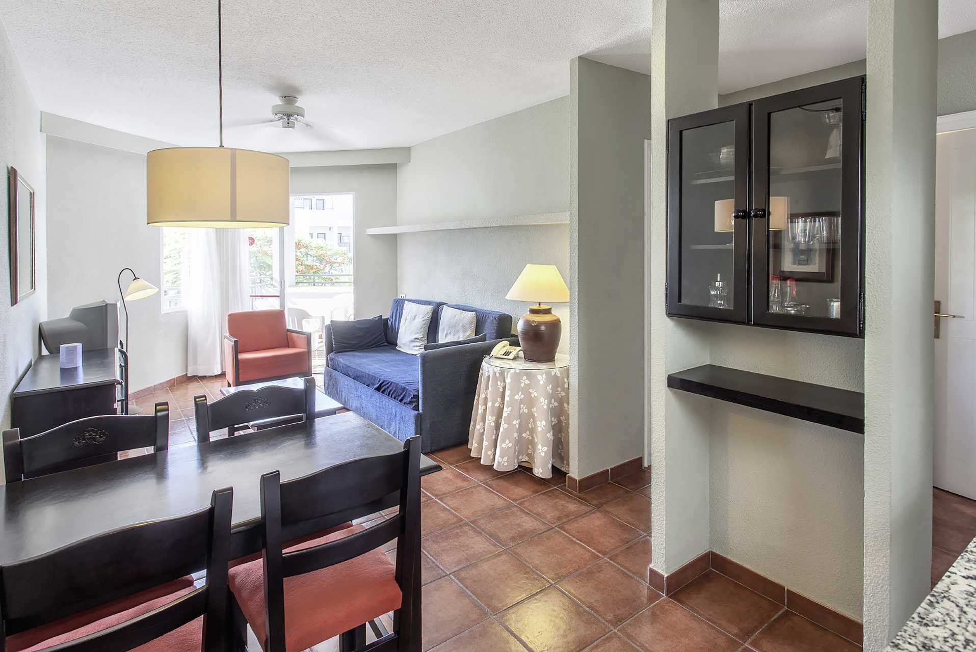 Ettromsleilighet med balkong eller terrasse samt bassengutsikt. Leilighetene ligger i en seksetasjers bygning med heis. Minikjøkken. En dobbeltseng eller to enkeltsenger. Minikjøkken med kjøleskap, kokeplater, kombinert stekeovn og mikrobølgeovn, vannkoker, brødrister og enkel kjøkkenutstyr. Wifi og safe mot avgift. Det er en takvifte på soverommet. TV. Hårføner. Badekar eller dusj samt wc. Rengjøring 5 ggr/uke.