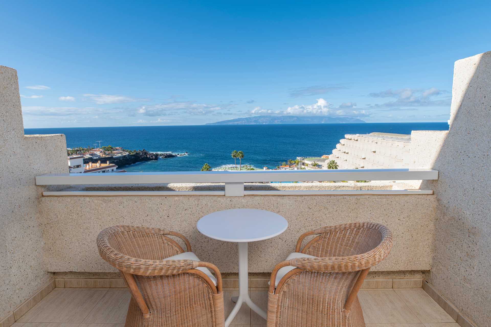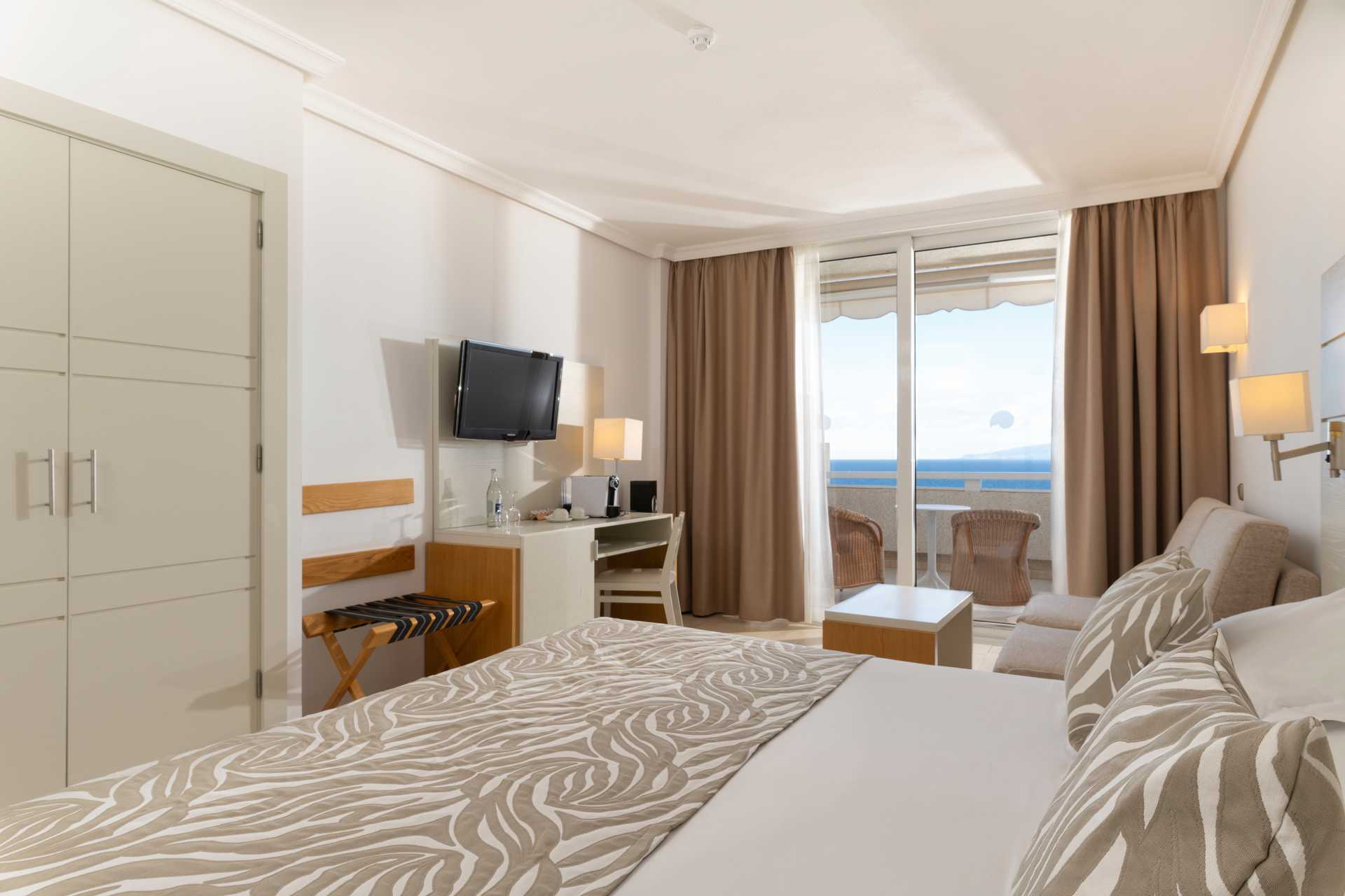 Deluxerom Plus kun for gjester over 16 år. Balkong med havutsikt. En dobbeltseng og en liten sittegruppe. Putemeny. Wifi, luftkondisjonering og safe inkludert. Espressomaskin. Vannkoker samt kaffe og te. Minibar som fylles ved ankomst, påfyll mot avgift. TV. Hårføner. Badekåper og tøfler Badekar, dusj og wc. Rengjøring 7 ggr/uke.